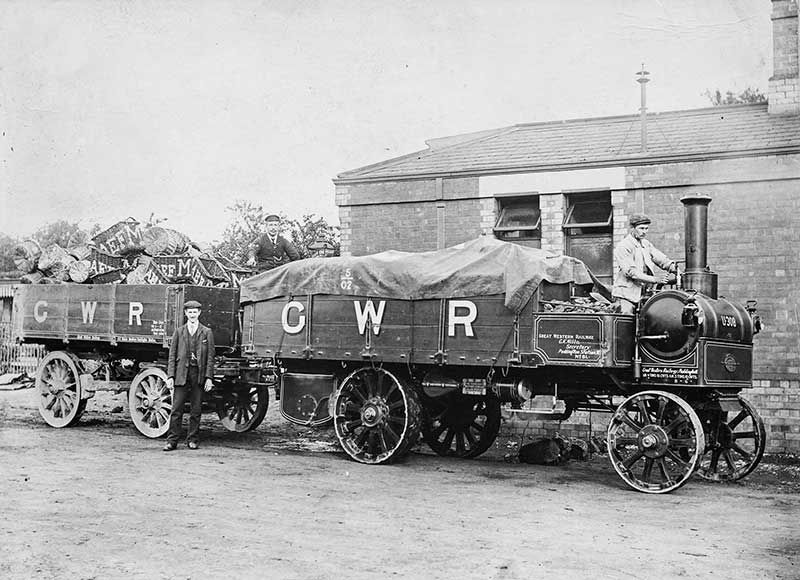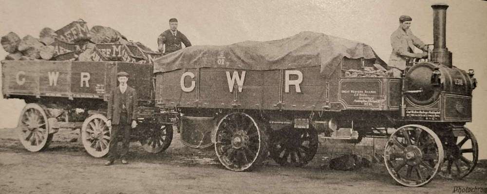 The Railway Magazine entitled this image, “Great Western Railway Enterprise.” It shows a steam motor wagon and trailer which was used for collecting and delivering goods at Henwick. [1: p480]