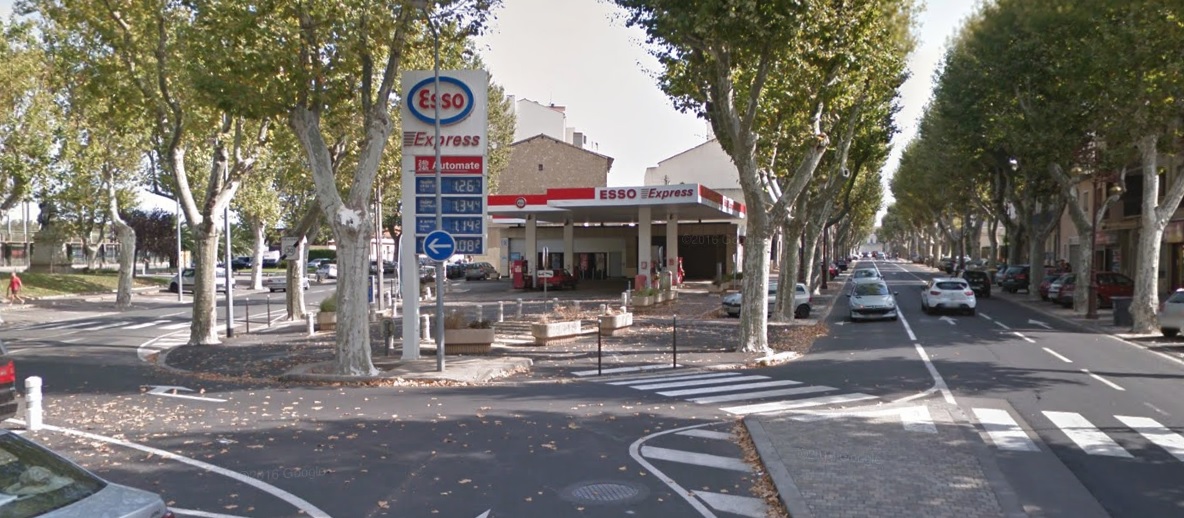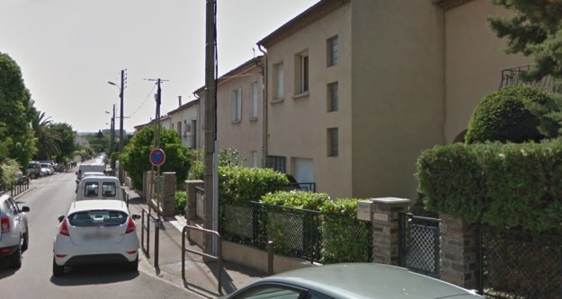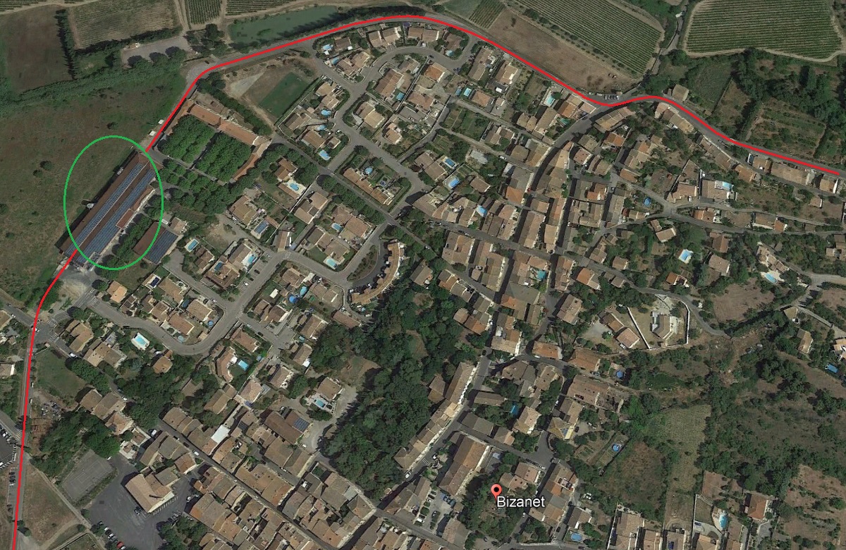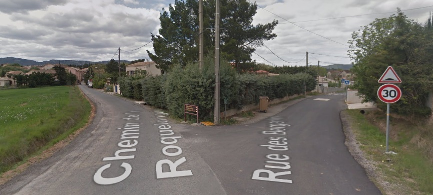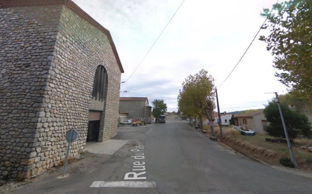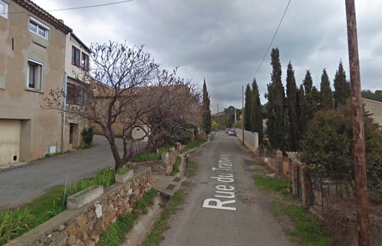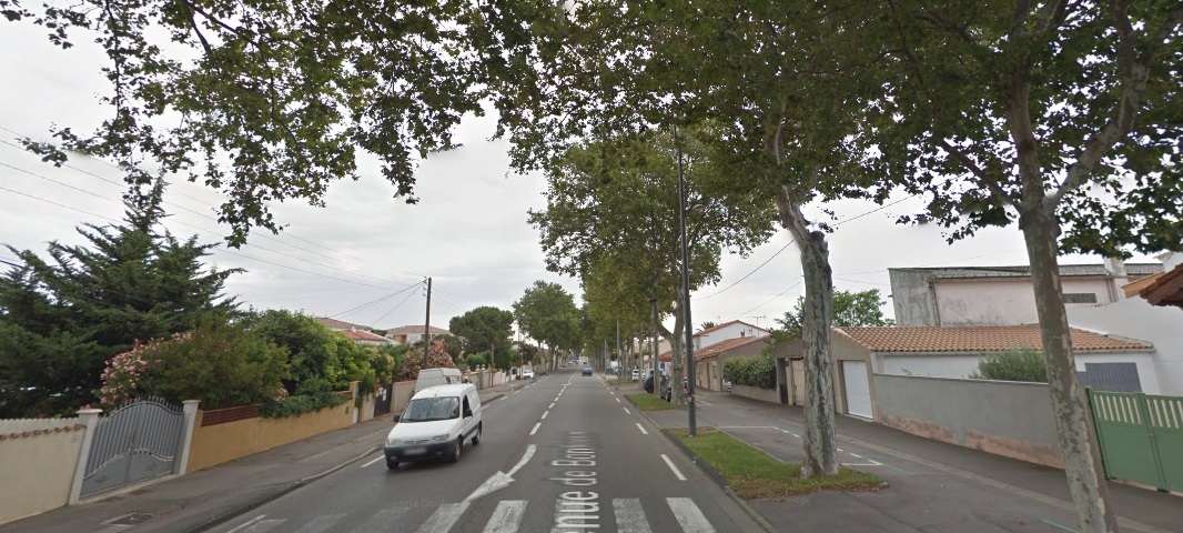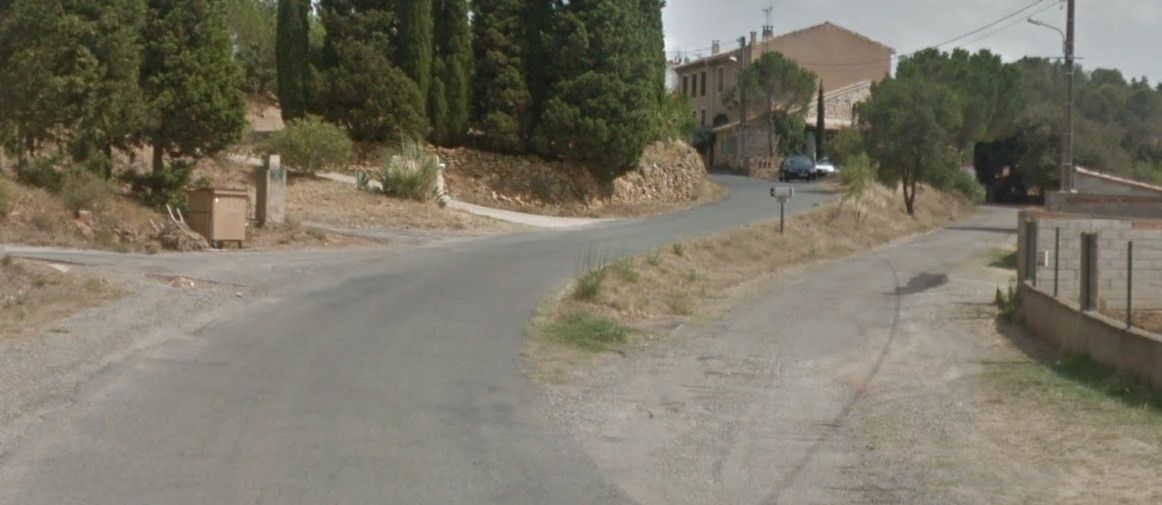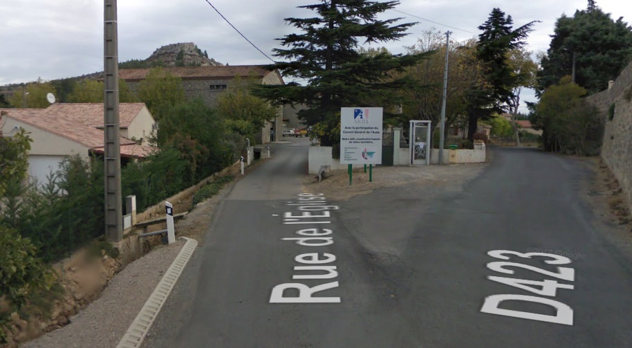 Rue du Centre is the road off to the left in this image. We are looking West along the Avenue des Corbieres [5]