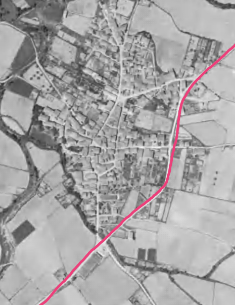 Worthy of note is that in the 1930s the village is shown on the map as being completly to the south of the river Berre with one bridge crossing the river and carrying the IC40. on the OpenStreetMap image above there are two further bridges shown to the East of the IC40 bridge and the village has expanded significantly to the North of the river.