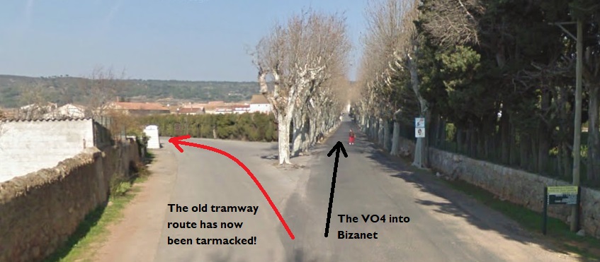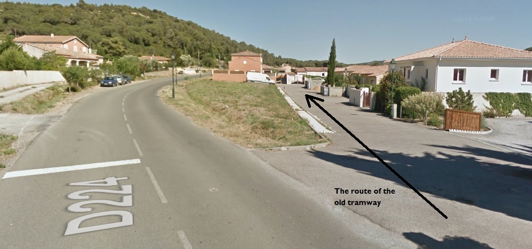 Still travelling in the same direction, this is the approximate location of the tramway station at Villeneuve-les-Corbieres. There is nothing of the station left to see and in the 21st Century there has been significant development on and around the site.