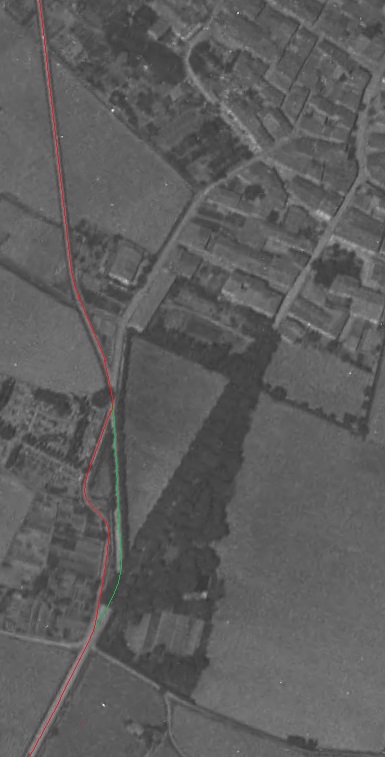 Looking from the village towards the station site in the 21st Century. The house on the left is the one noted in the monochrome image of the village taken from the South and shown above.