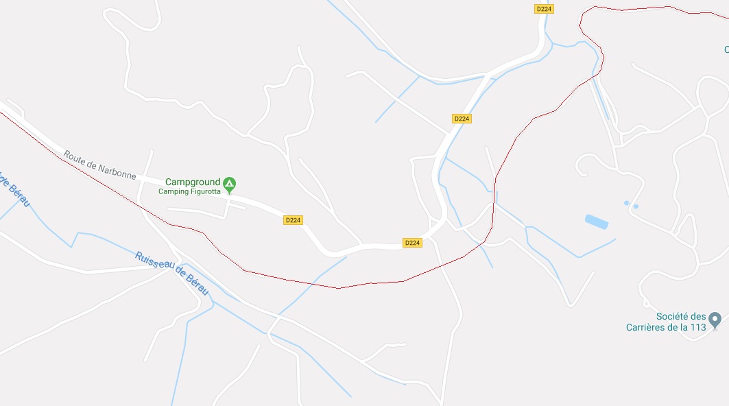 The tramway and GC105 followed the valley of La Berre from Villeneuve-les-Corbieres to Durban. It approached Durban Corbieres from the West and remained on the line of what is now the D611 through the village.