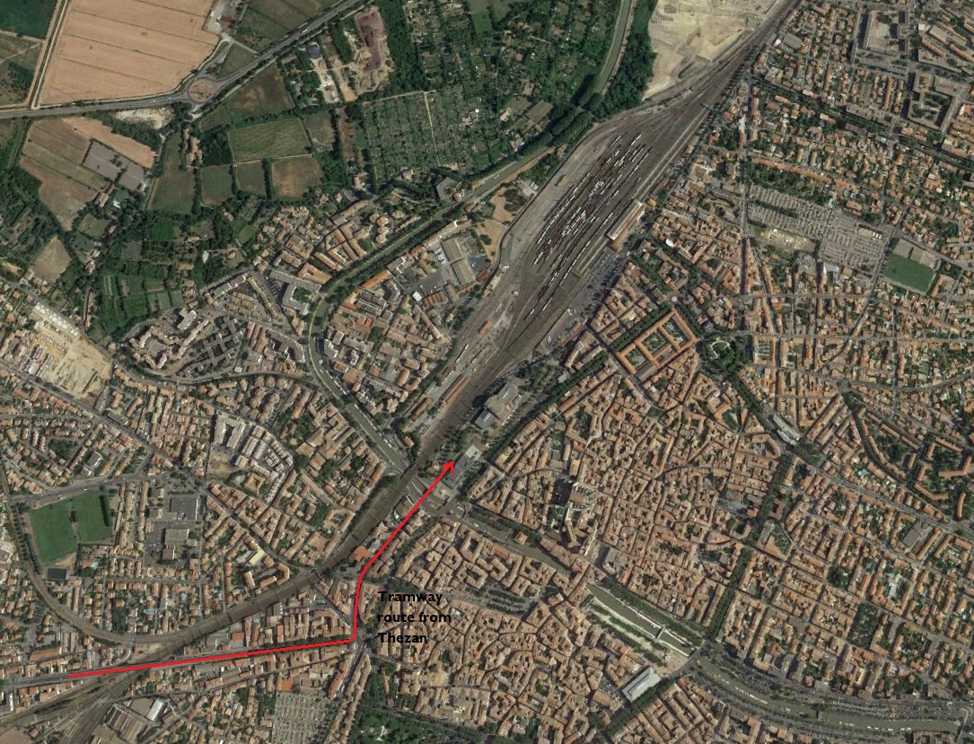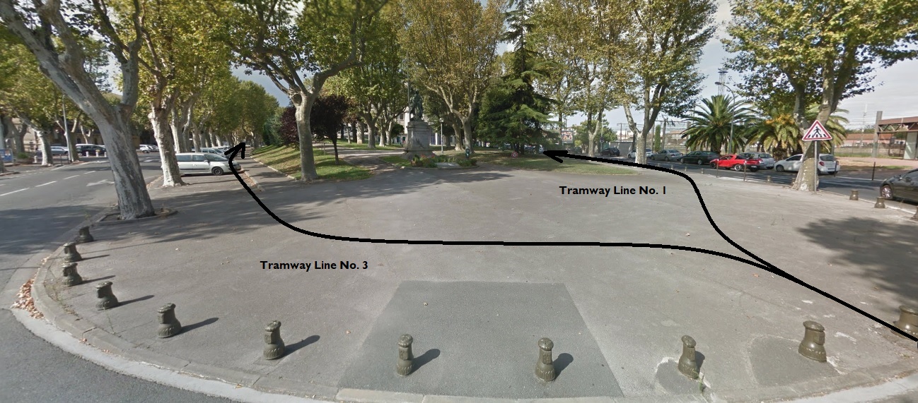 The tram sets off down the road from the station back into Durban – today it is the D611, Avenue de Narbonne. [13]