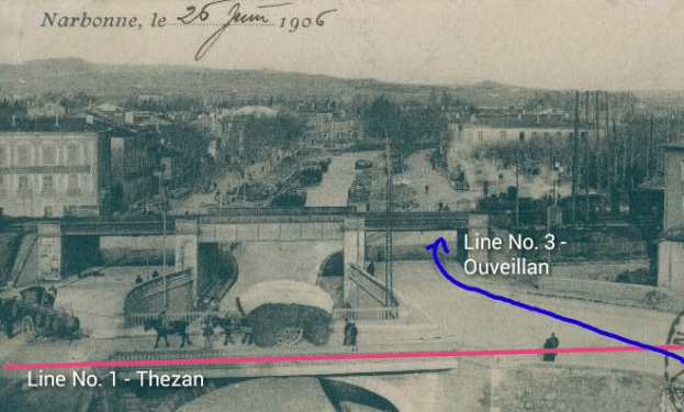 The two images above show trams on Le Pont sur Le Petit Verdouble close to Tuchan. [1][2].