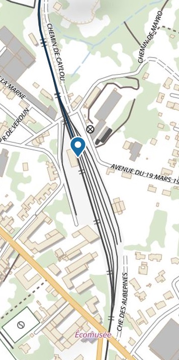 Journeying on from St.-Blaise the line approached Reals. As it passed the location of the modern sports ground which is shown as a black rectangular outline on the map above, a short length of rail is still visible. [19]