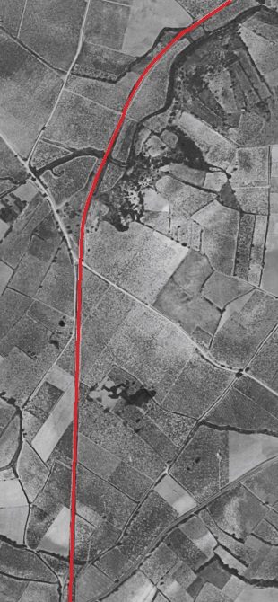 Two bridges in short succession at location ‘6’ on the aerial photograph from 1961 above carried the line across seasonal streams. [8]