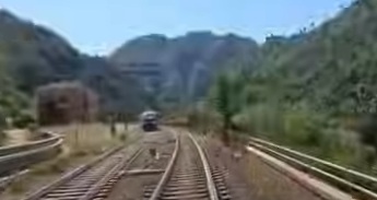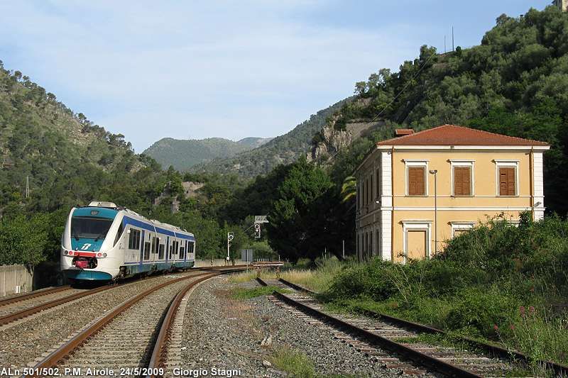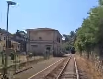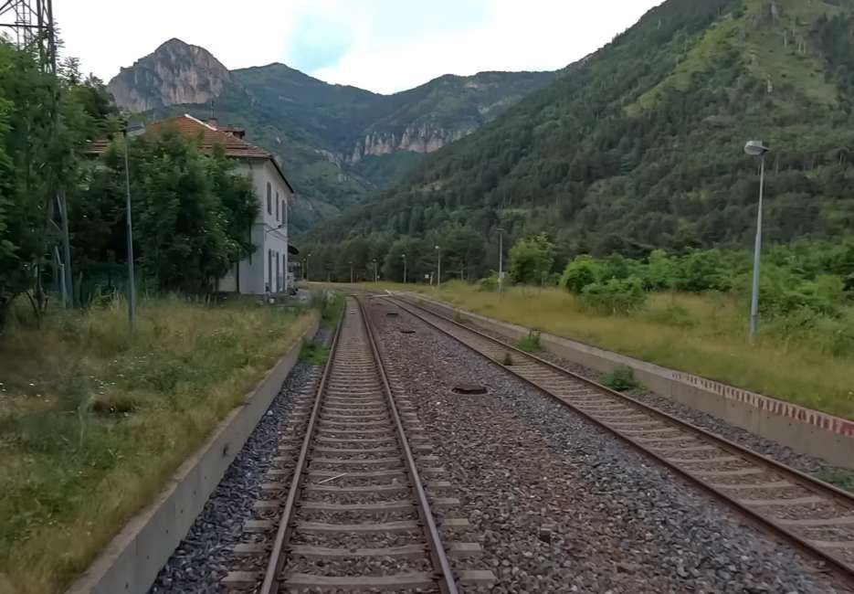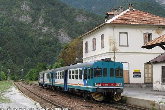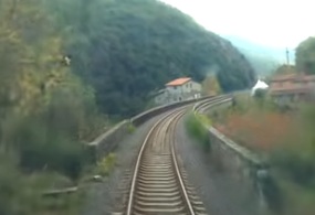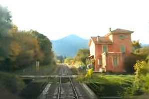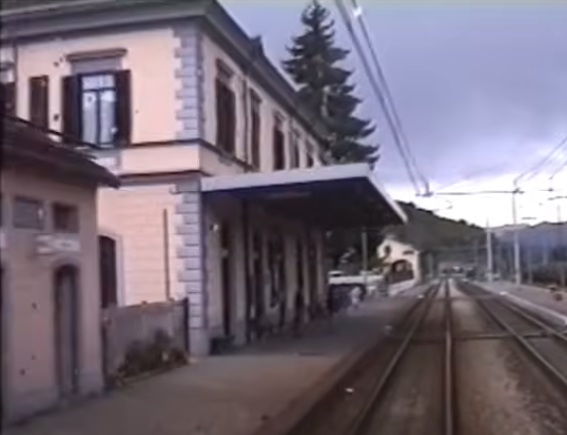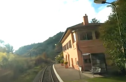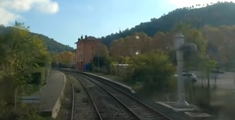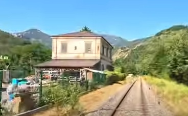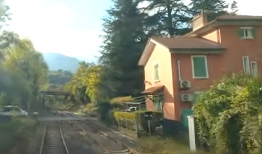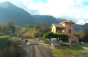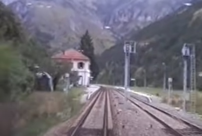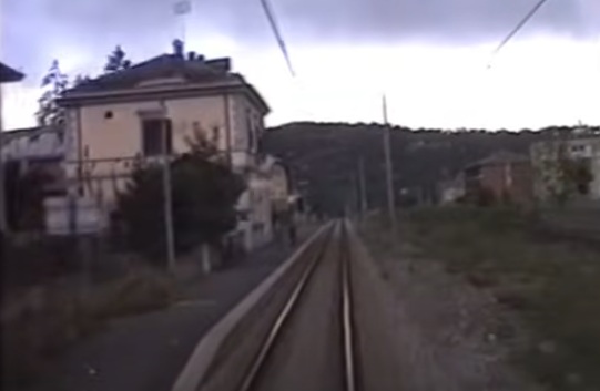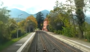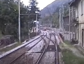 A similar view looking North into Roccavione Railway Station from the cab of the multiple unit. The station has no passing loop. [45]