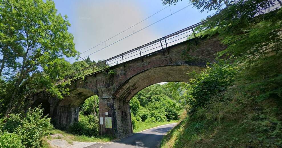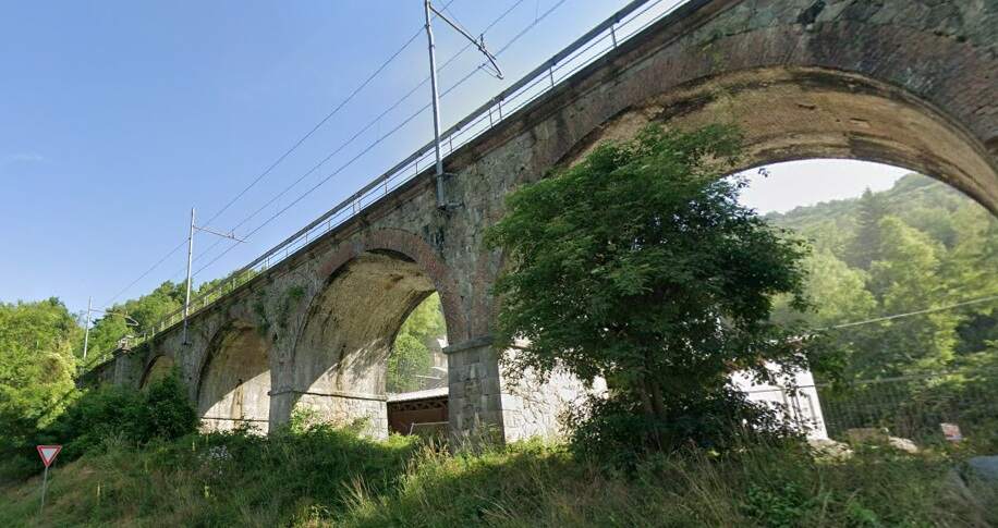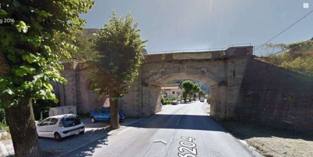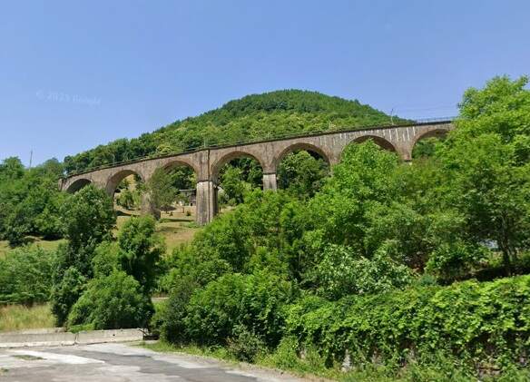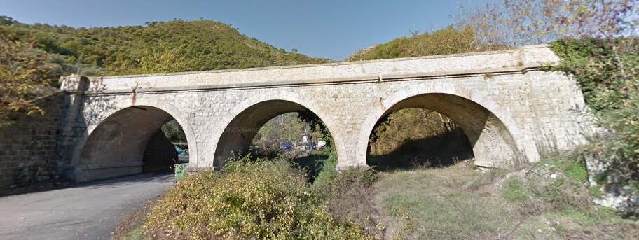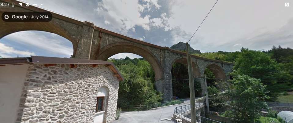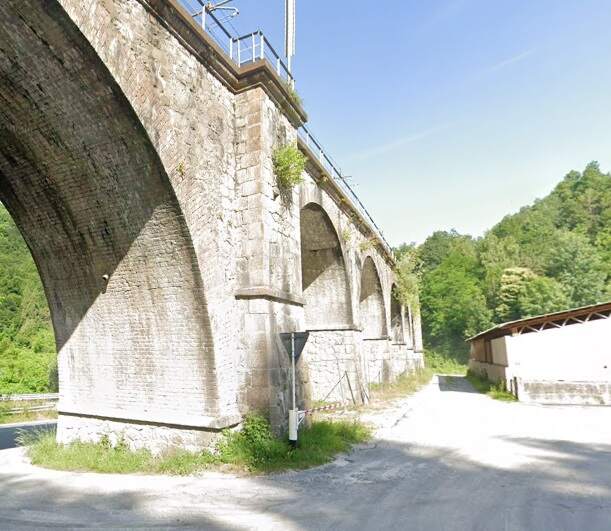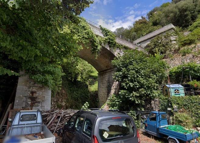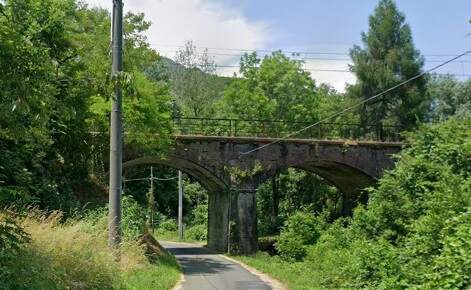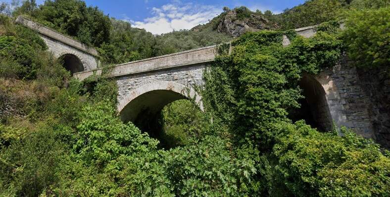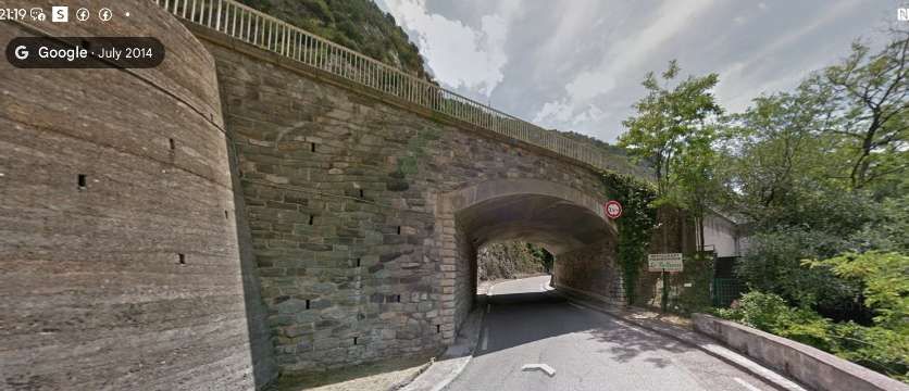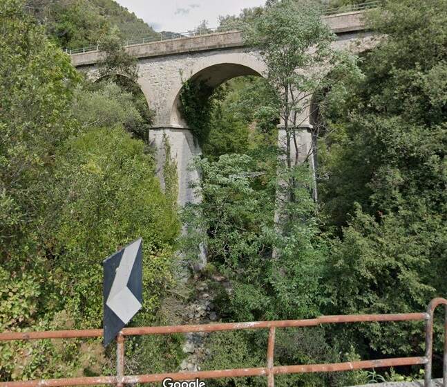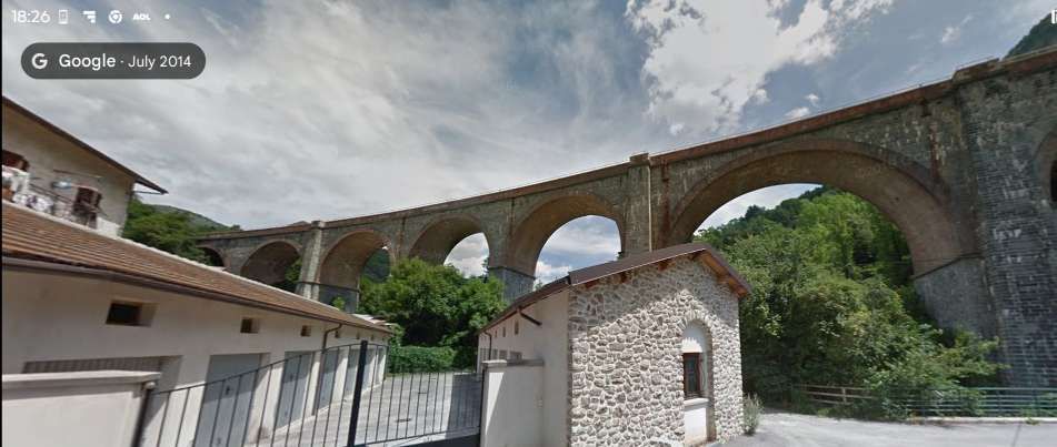 The Rio Vermanera masonry viaduct, seen from the West, one span of which crosses the Strada Vermanera, another spans the Vermaners stream. [Google Streetview, June 2025]