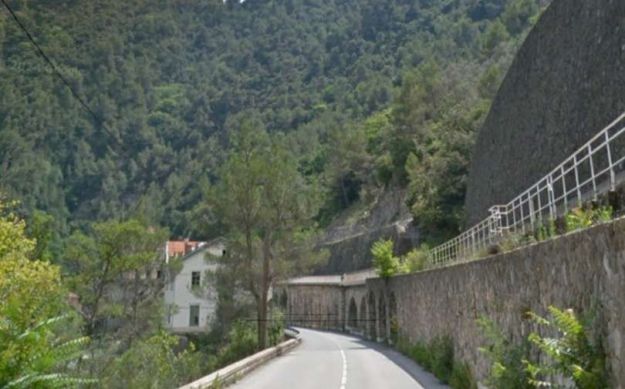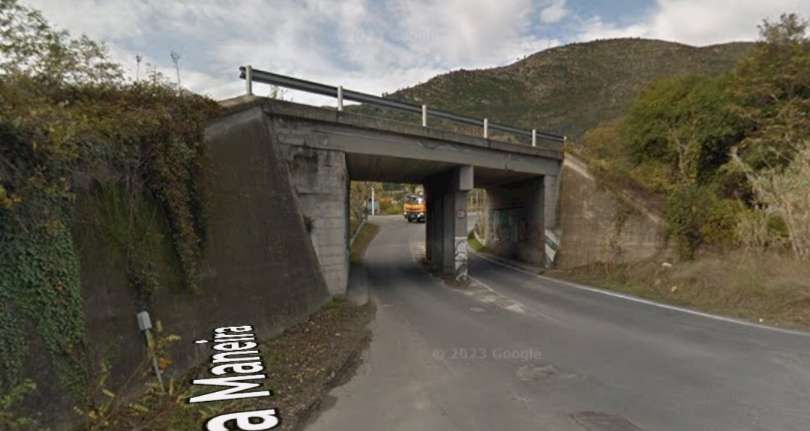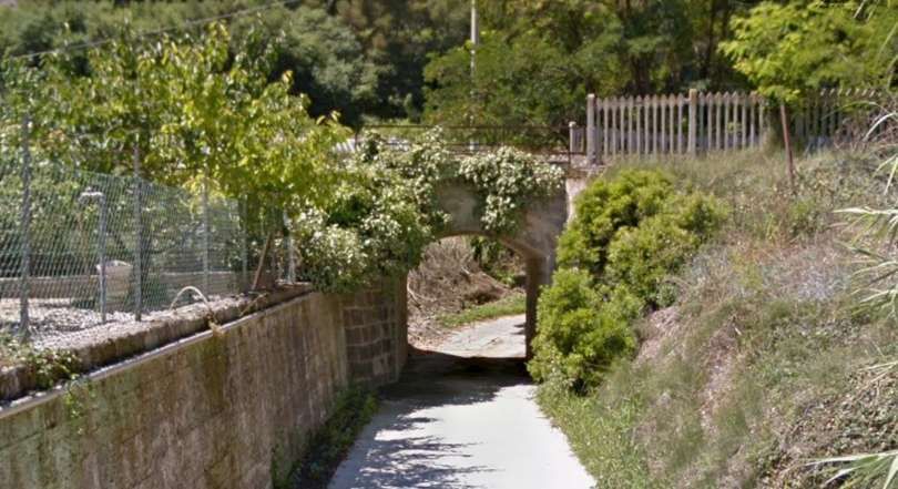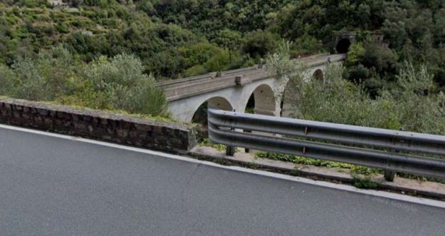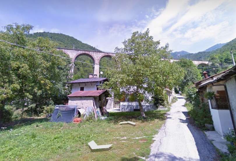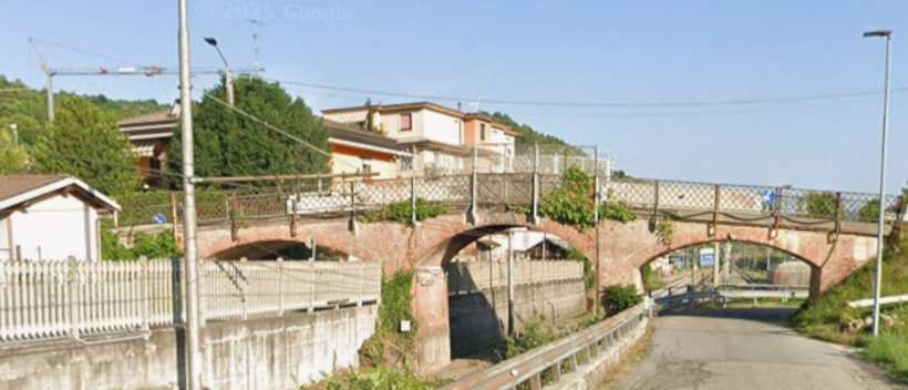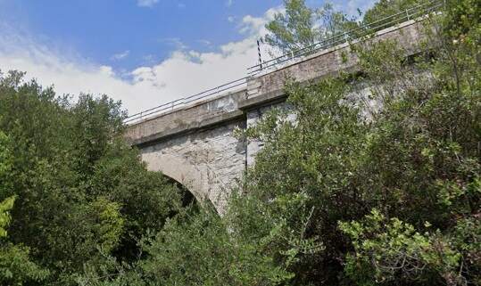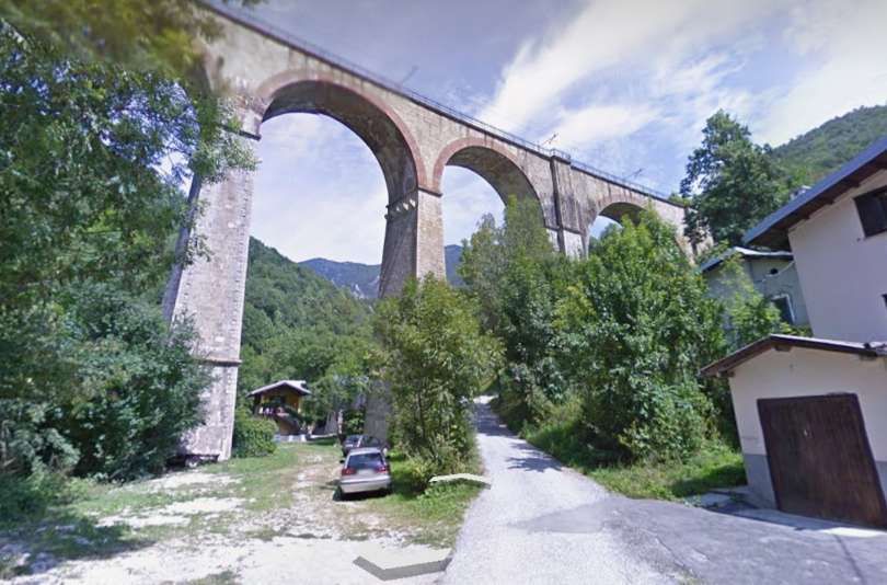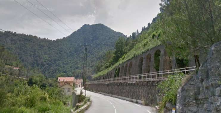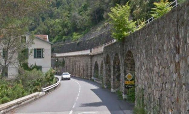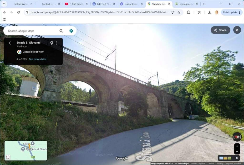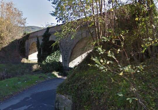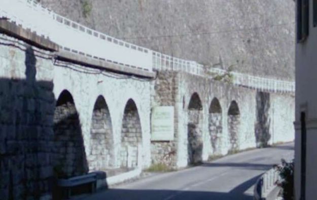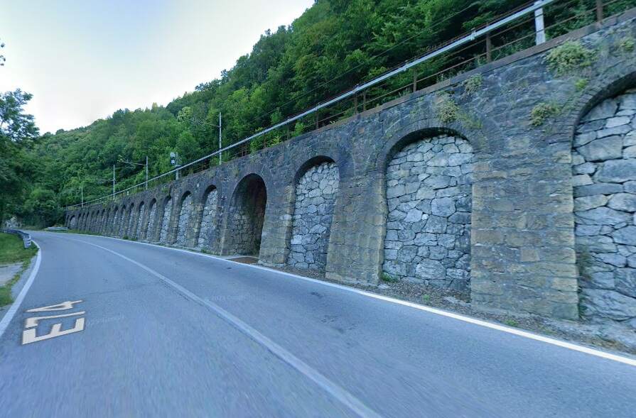 The Rio Vermanera masonry viaduct, seen from the West, one span of which crosses the Strada Vermanera, another spans the Vermaners stream. [Google Streetview, June 2025]