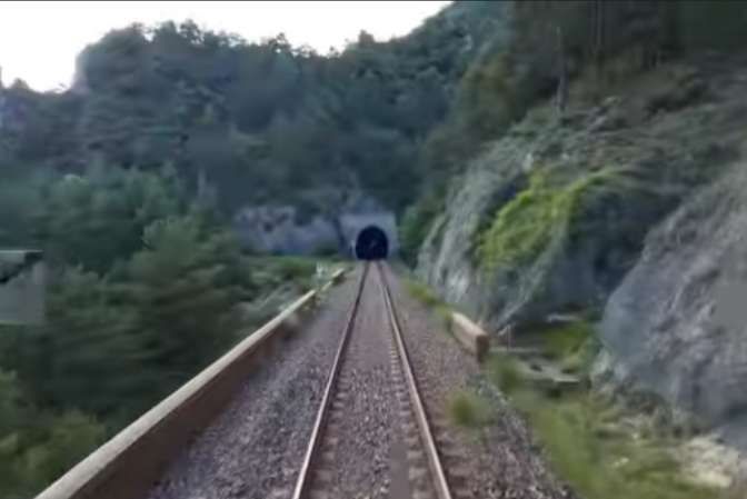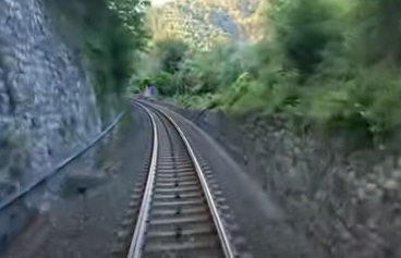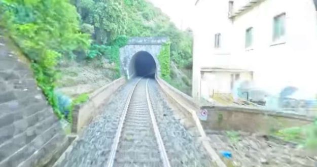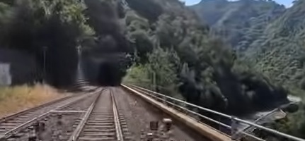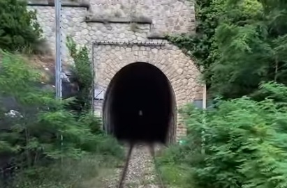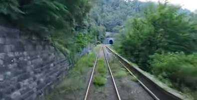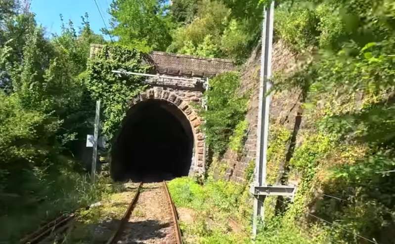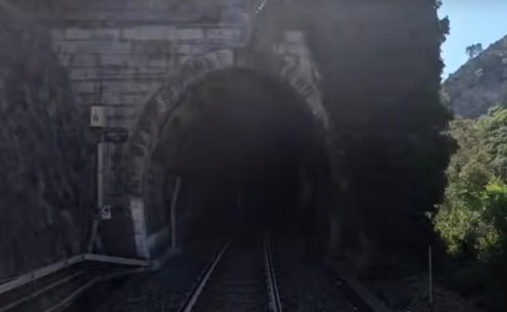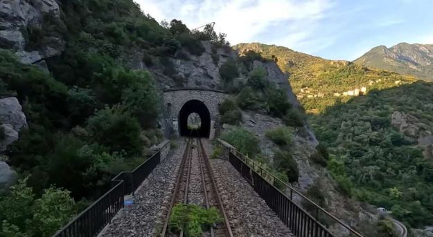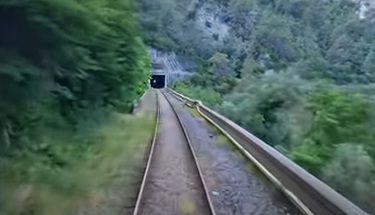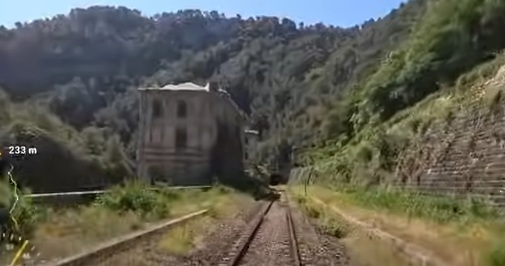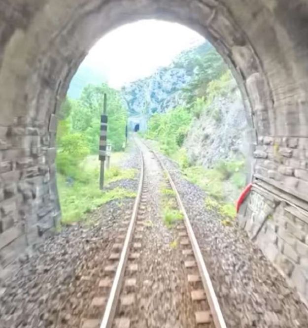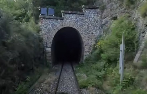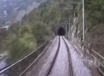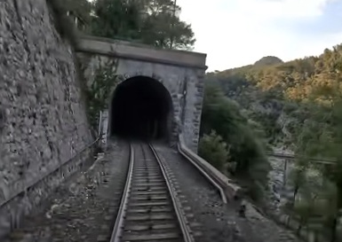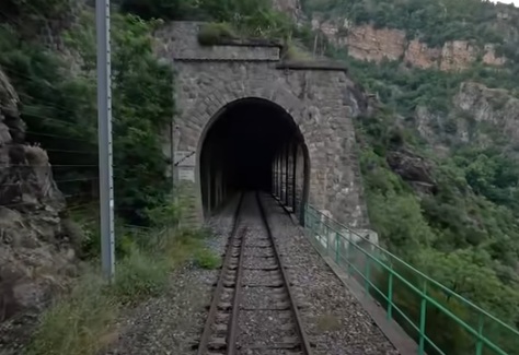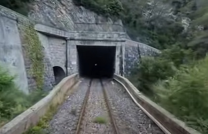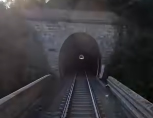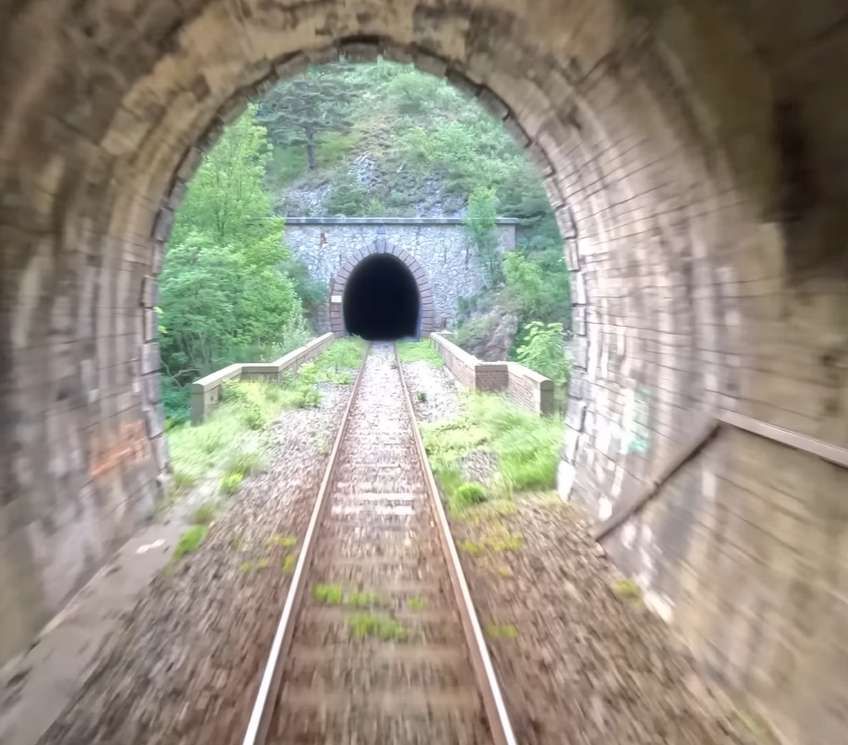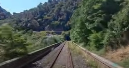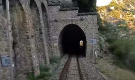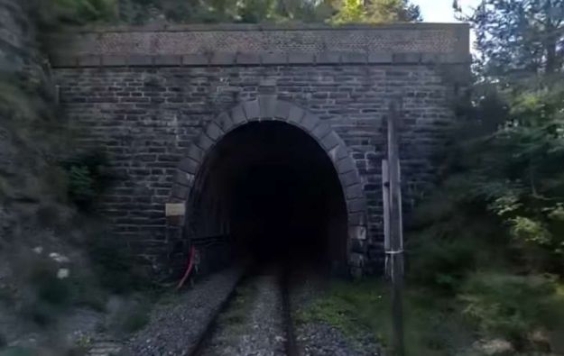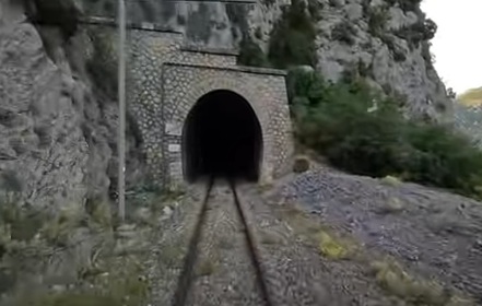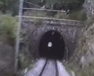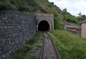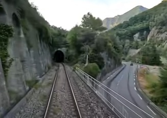 Tunnel de Serradone (33 metres long), seen from the cab of the Nice-bound train. [4]