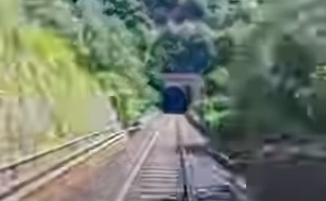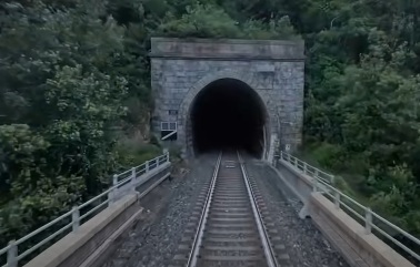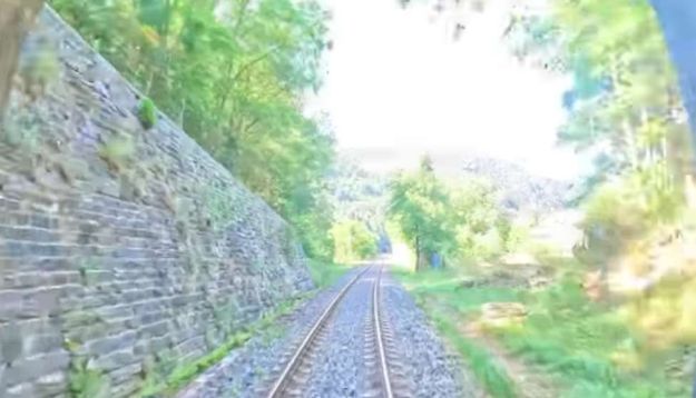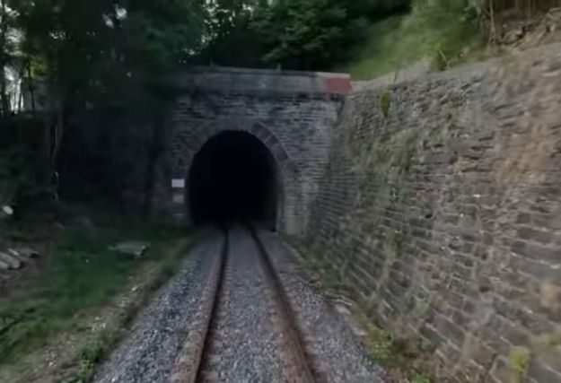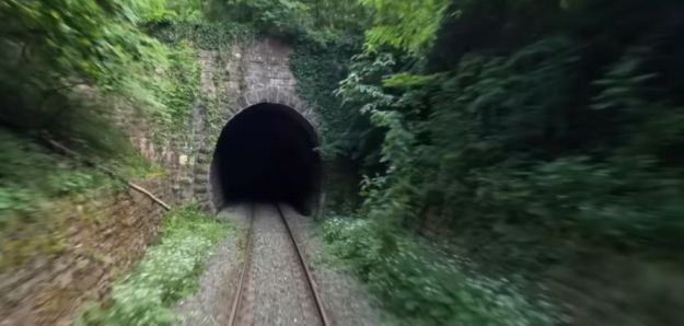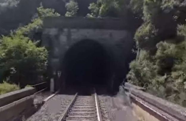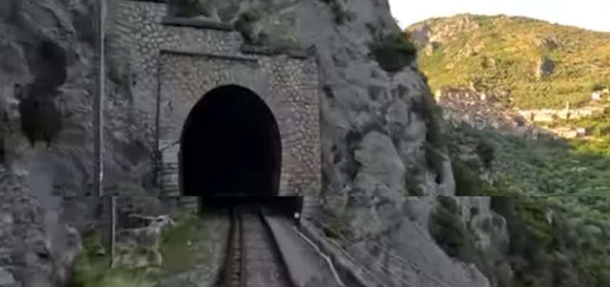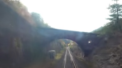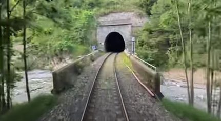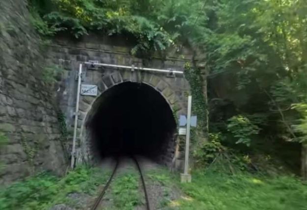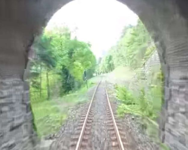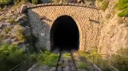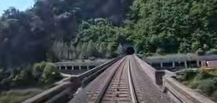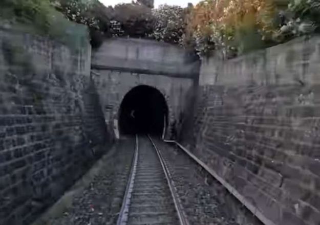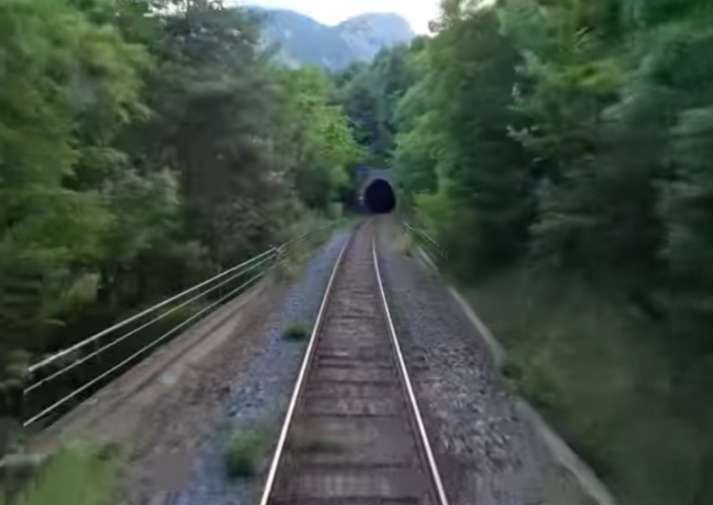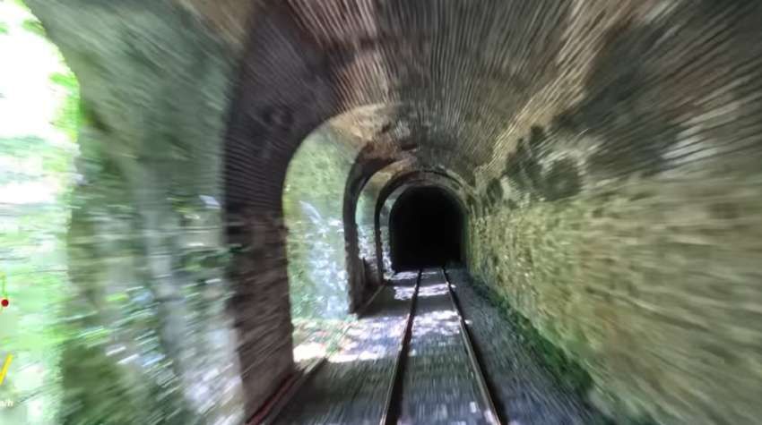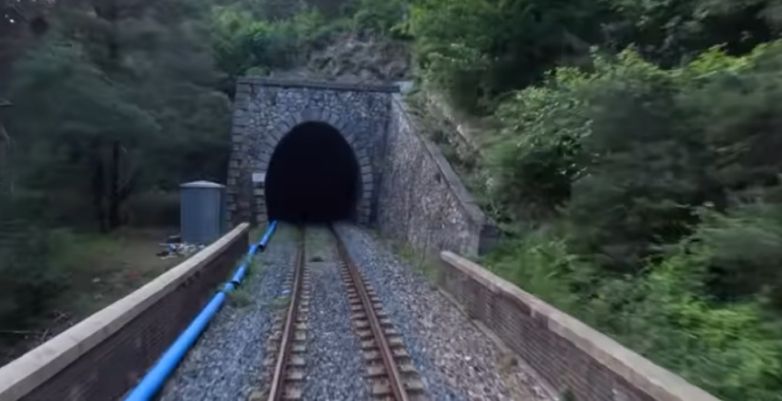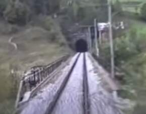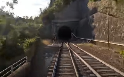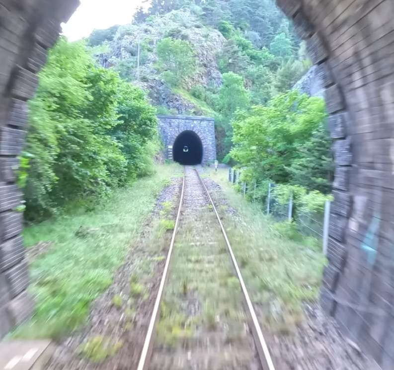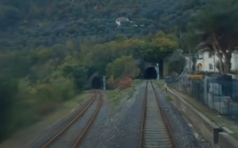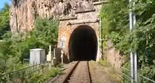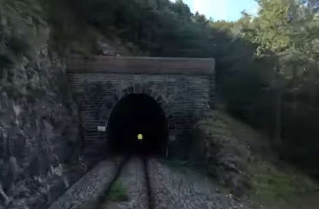 Tunnel de Serradone (33 metres long), seen from the cab of the Nice-bound train. [4]