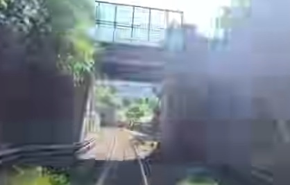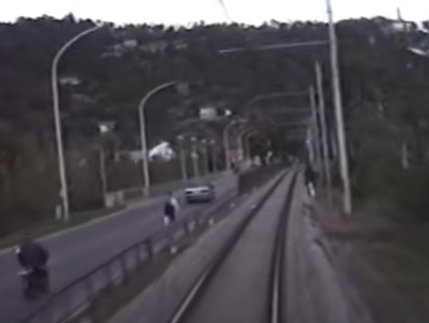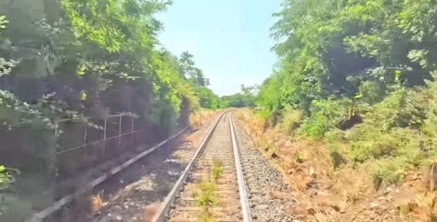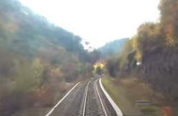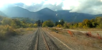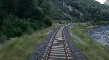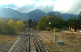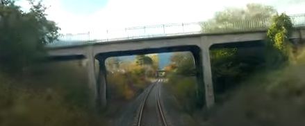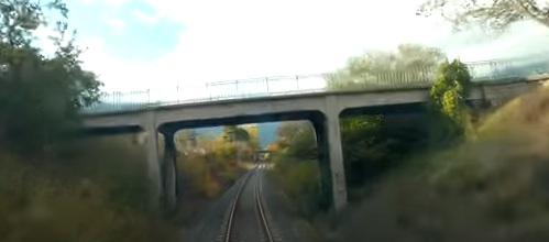 A view from the South showing the road on the left. This is a view from the cab of the multiple unit again. [45]
