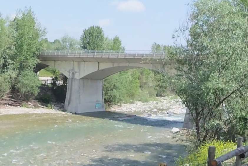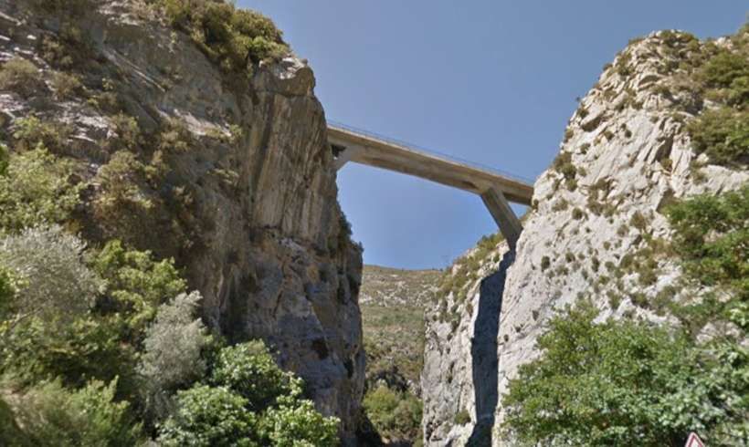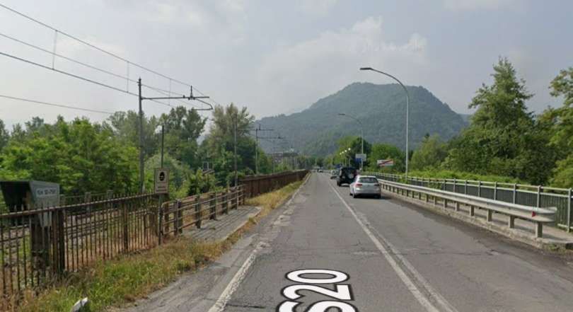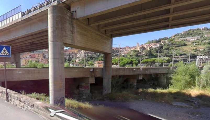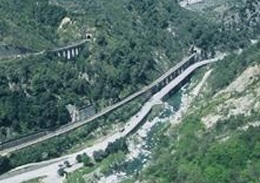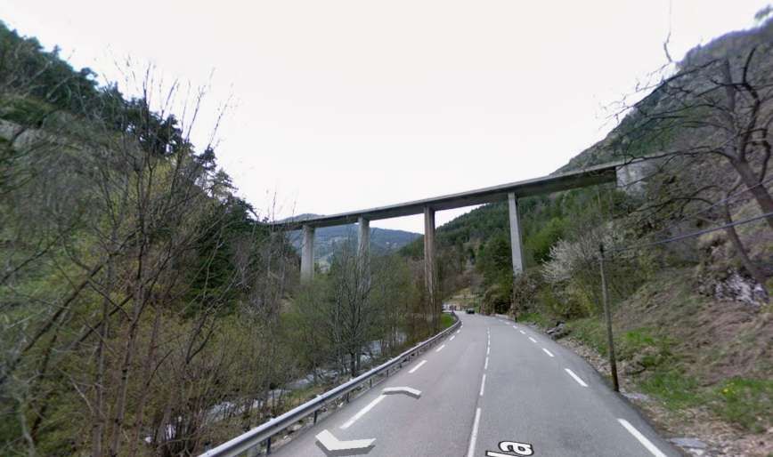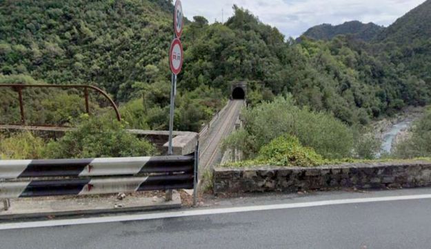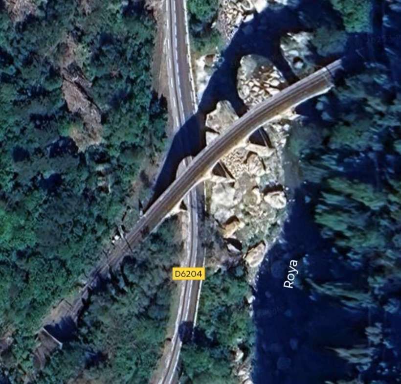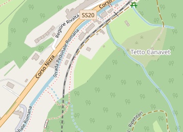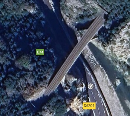 The 3-span viaduct across the River Gesso carries both the railway and the SS20. [Google Streetview, June 2025]Looking South along the SS20 as it crosses the Gesso. The railway cantenary is on the left with the tracks hidden behind the dividing fence. [Google Streetview, June 2025]