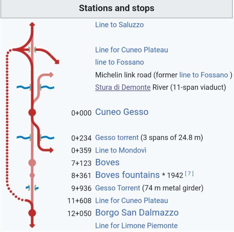 The Cuneo-Borgo San-Dalmazzo-Demonte tramway linked the cities of Cuneo, Borgo San Dalmazzo and Demonte from 1877 to 1948. In the late 1870s, following the success of similar initiatives in the Turin area, the construction of tramways was pursued in the province of Cuneo. [48] As we have already noted, this was just one of a number of such tramways in the area.