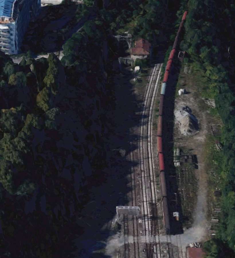 The two tunnels are only separated by a short length of the line. [Google Maps, July 2025]