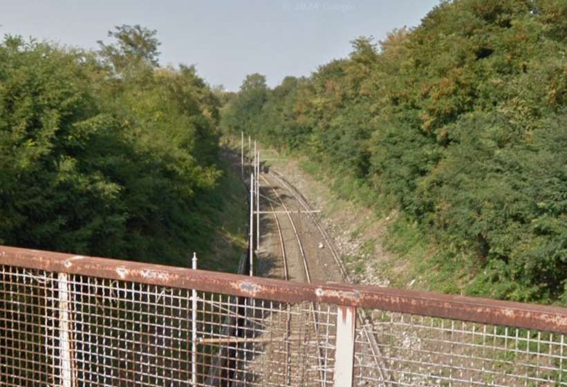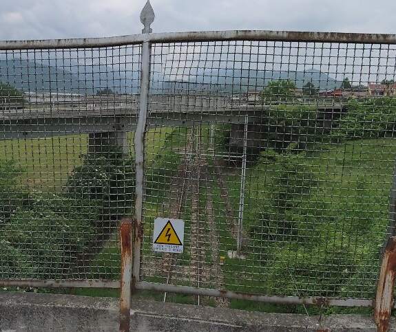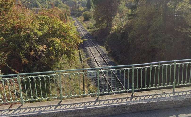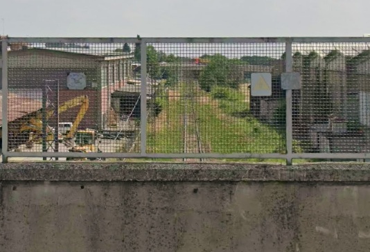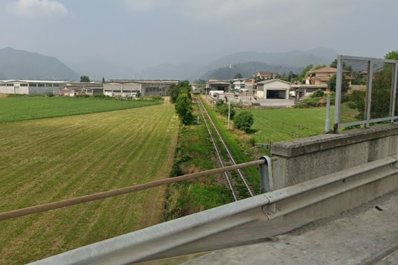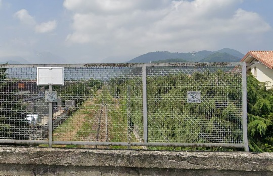 A broader view of Robilante Station taken from a road at the Southeast corner of the station site. [Google Streetview, June 2025]The road overbridge at the Southeast end of the station site. [Google Streetview, June 2025]The view Northwest from the road bridge which carries Via Luigi Emina over the line. [Google Streetview, June 2025]The view Southeast from the same road bridge. [Google Streetview, June 2025]The bridge which carries Via Luigi Emina over the line, seen from the Southeast. [Google Streetview, June 2025]
