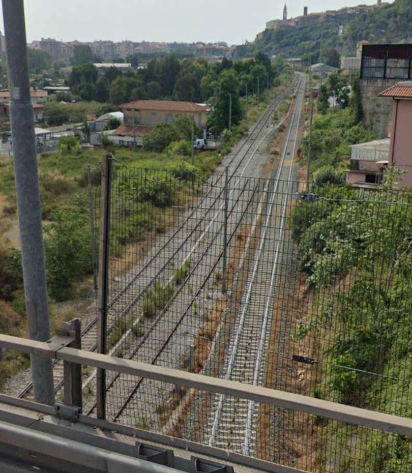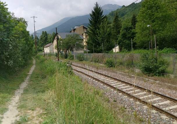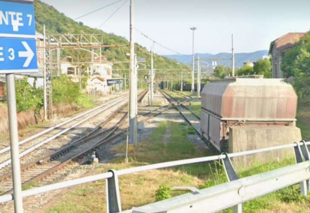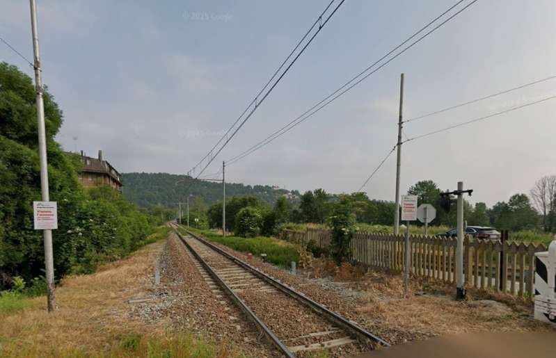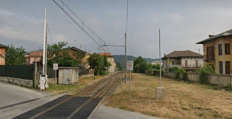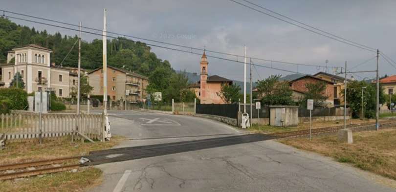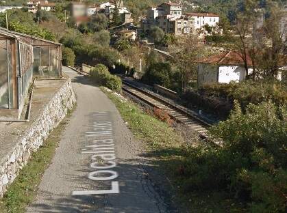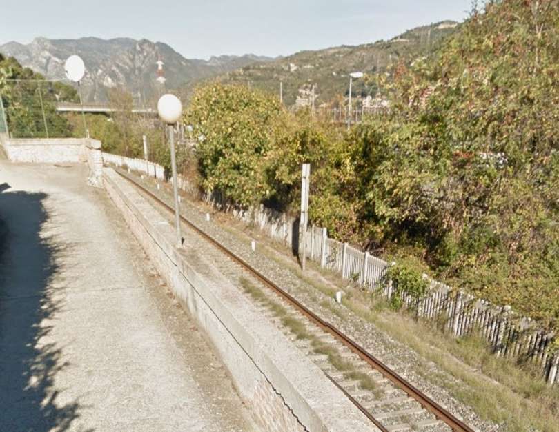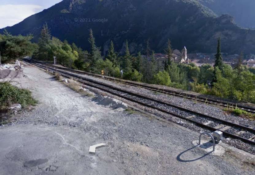 Looking back from the level-crossing at Via Piano Sottano towards Roccavione Railway Station. [Google Streetview, June 2025]