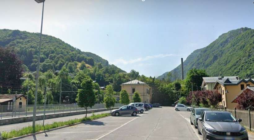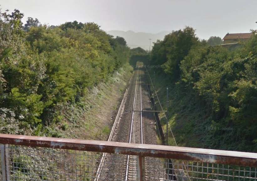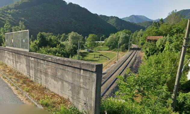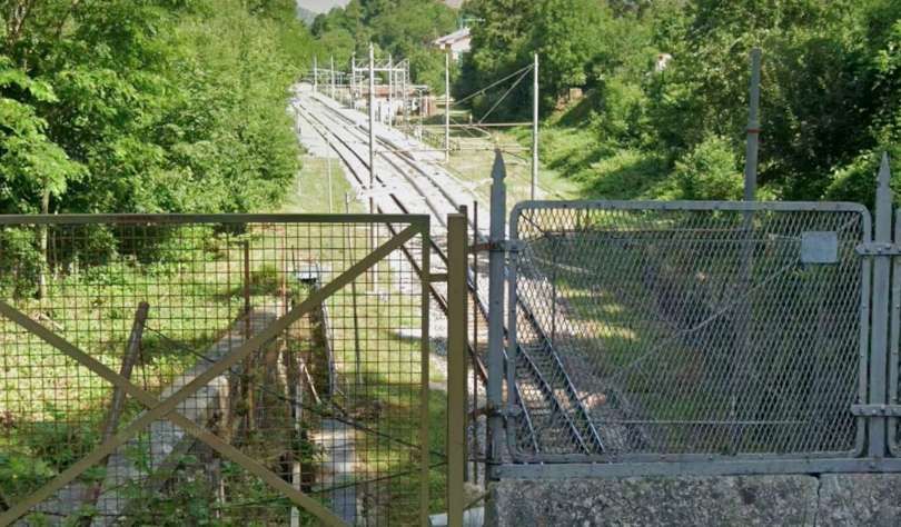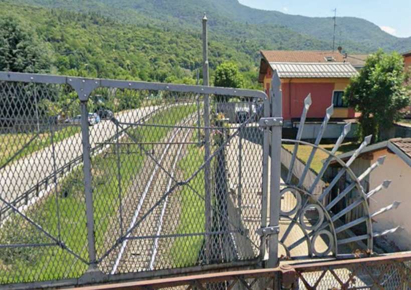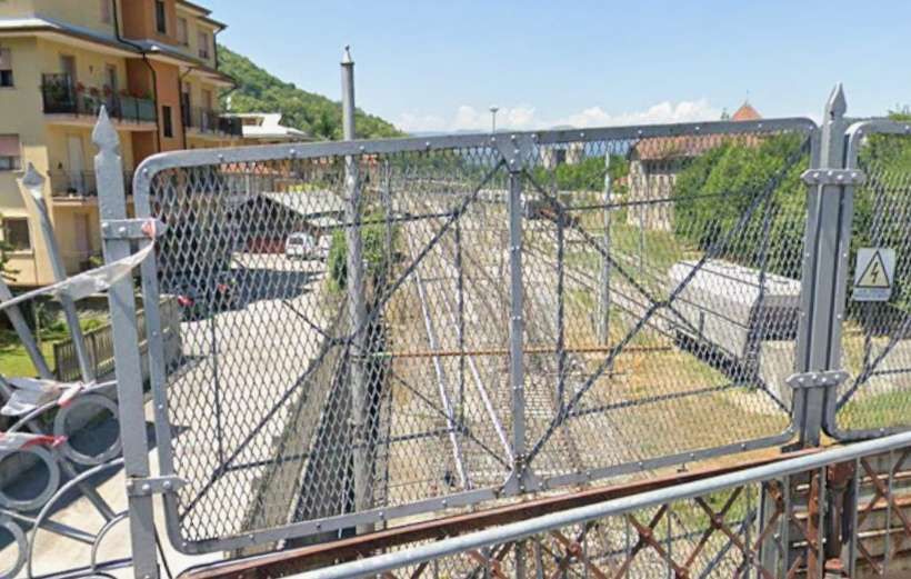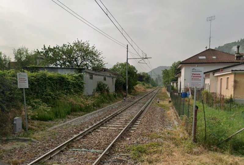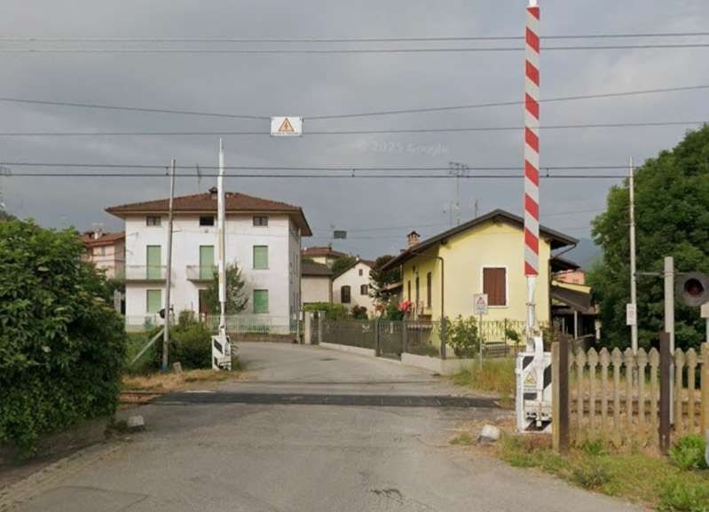 Looking back from the level-crossing at Via Piano Sottano towards Roccavione Railway Station. [Google Streetview, June 2025]