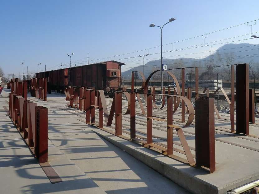 The Deportation Memorial , with a row of cattle wagons similar to those used then (the wagons are from 1953) commemorates the names of the deportees, their age and nationality and their family relationships. [50][51]