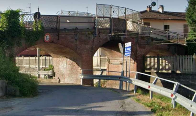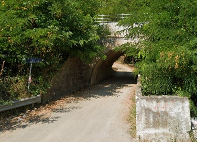 Near Cascina David another brick-arched bridge pierces the railway embankment where Via David passes beneath the railway. Again this view is from the Southeast on Via Sant’Andre. [Google Streetview, May 2022]