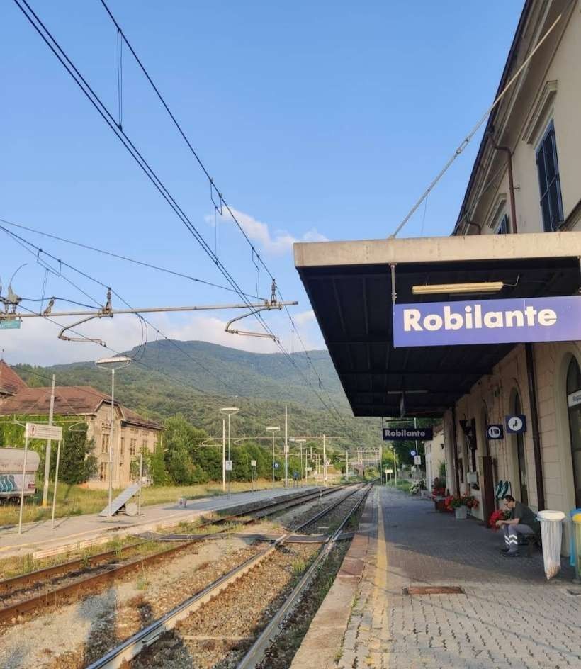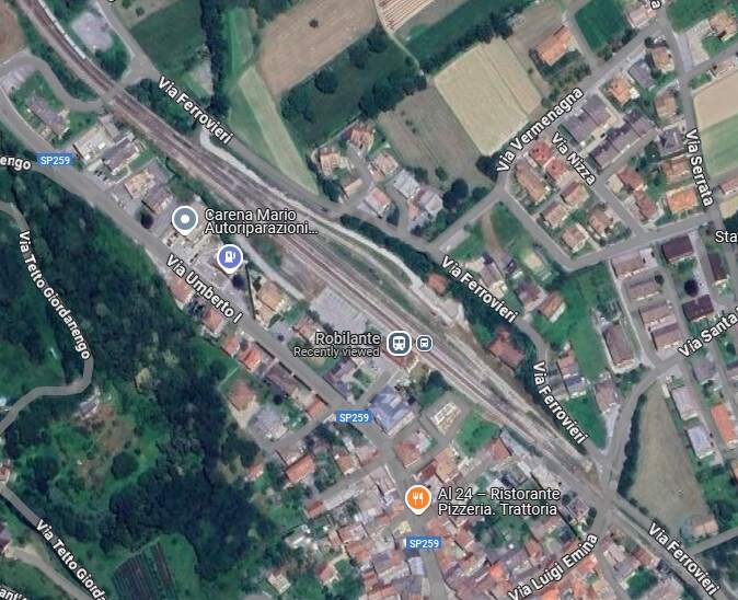 Robilante Railway Station. [Google Maps, July 2025]The station building sat on the Southwest side of the line, This view looks through the station to the Southeast, (c) Gum Gum. [Google Maps: July 2023]Robilante Station building and forecourt seen from the Northeast on Via Roma. [Google Streetview, June 2025]This view looks Northwest through the station towards Cuneo, (c) Mattia Vigano. [Google Maps: April 2019]