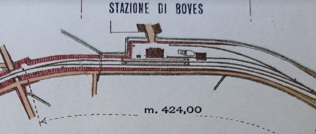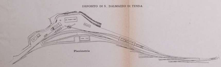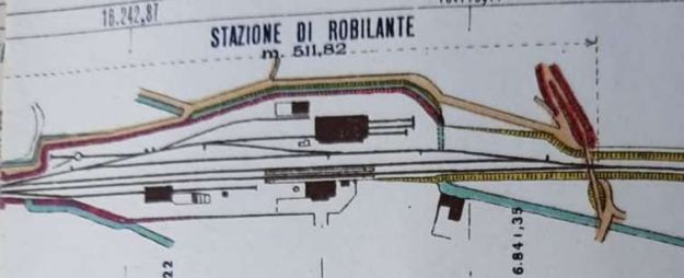 Robilante Railway Station had three platform tracks, a small goods yard, a water feed, a 8.50m turntable and an engine shed. Beyond the station track gradients increased significantly and provision needed to be made for banking engines in steam days. [1: p27]