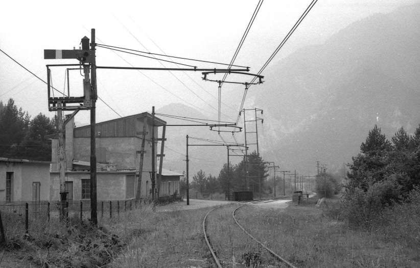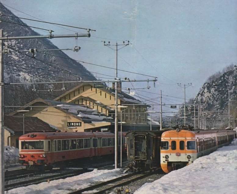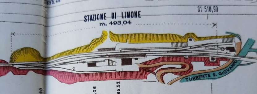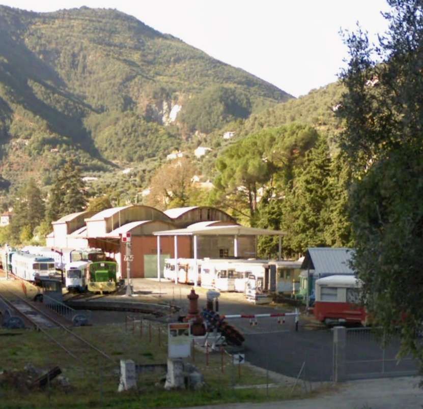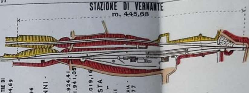 Vernante Railway Station was the end of the third tranche of works on the railway. Vernante is “a busy centre of livestock breeding and craftsmanship where renowned knives are produced. Vernante station … has two platform faces with a passing loop, … [a goods shed] and platform for goods traffic, a 5.50 m turntable and a curious installation, unique on the line, the “binario di salvamento”. This is a counter-slope safety [line which leaves the main running line close to the station throat] on the Limone side. The switch is permanently positioned to provide access to the safety line, so that any vehicle drifting down the 26 mm/m gradient south of the station can enter it, be slowed down by the opposite gradient and then come to a stop. Each descending train must stop before the switch, so that it can be maneuvered on site to allow normal entry into the station. This simple but effective precautionary measure applies to other steep-gradient lines on the Italian network, in the Alps and the Apennines.” [1: p27]