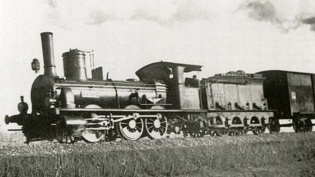 “The locomotive developed by the Scottish engineer Robert Francis Fairlie (1831-1885) from 1869 on the Ffestiniog narrow gauge railway in Wales, had two boilers connected by a single central firebox. Each boiler supplies steam to a pair of cylinders driving an independent group of axles. This system was developed in France from 1888 by artillery captain Prosper Péchot (1849-1928) and engineer Charles Bourdon (1847-1933), creators of an articulated narrow gauge locomotive widely used by the French army.” [1: p21]