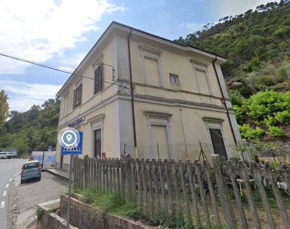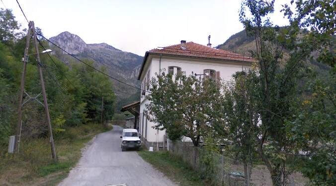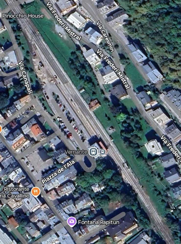A plan of Vernante Railway Station. [47]Vernante Railway Station. [Google Streetview, July 2025]The view Southeast from the station car park, after demolition of the old goods shed. The main station building features at the centre of the image. [Google Streetview, June 2025]The main station building at Vernante seen from the West. [Google Streetview, June 2025]