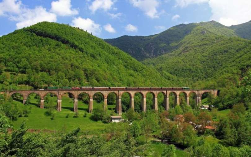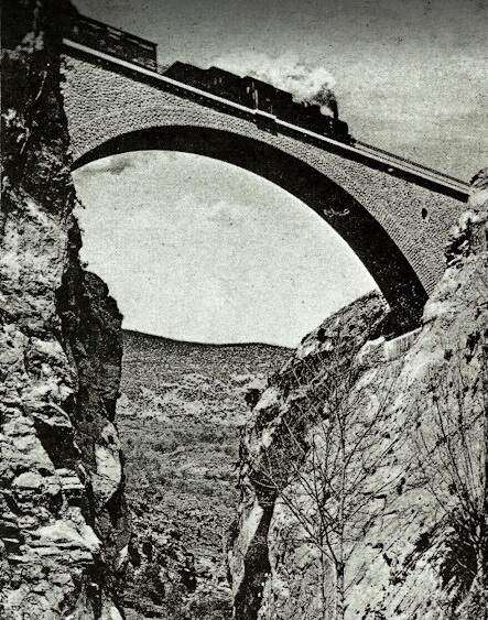 the Rio Vermanera masonry viaduct, with three 8-metre arches;