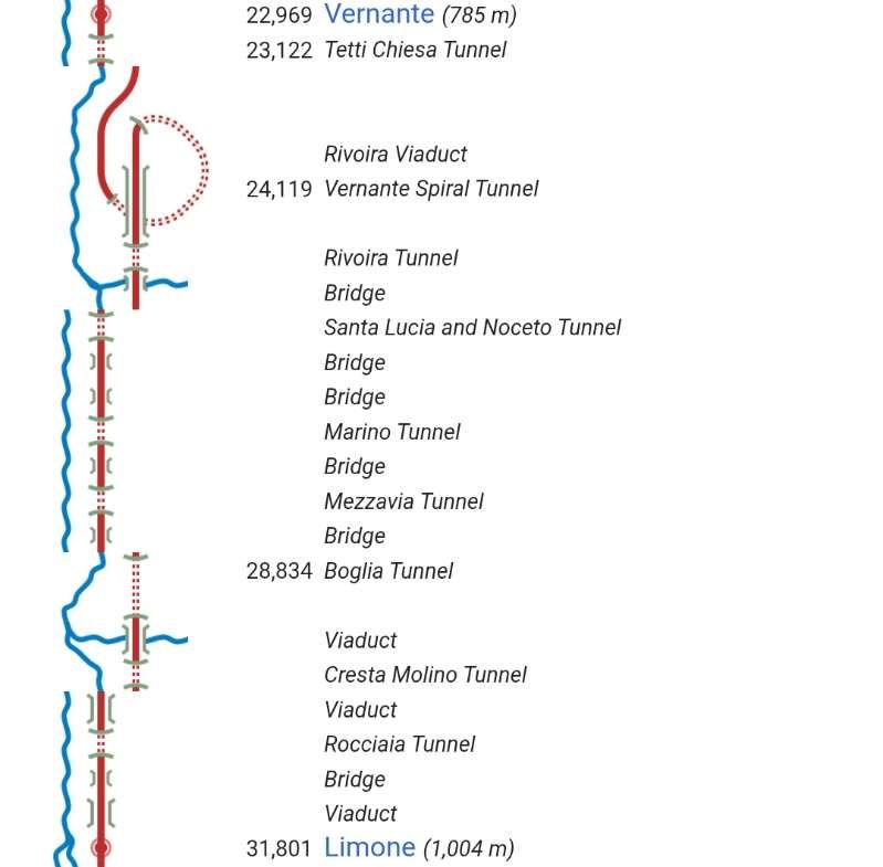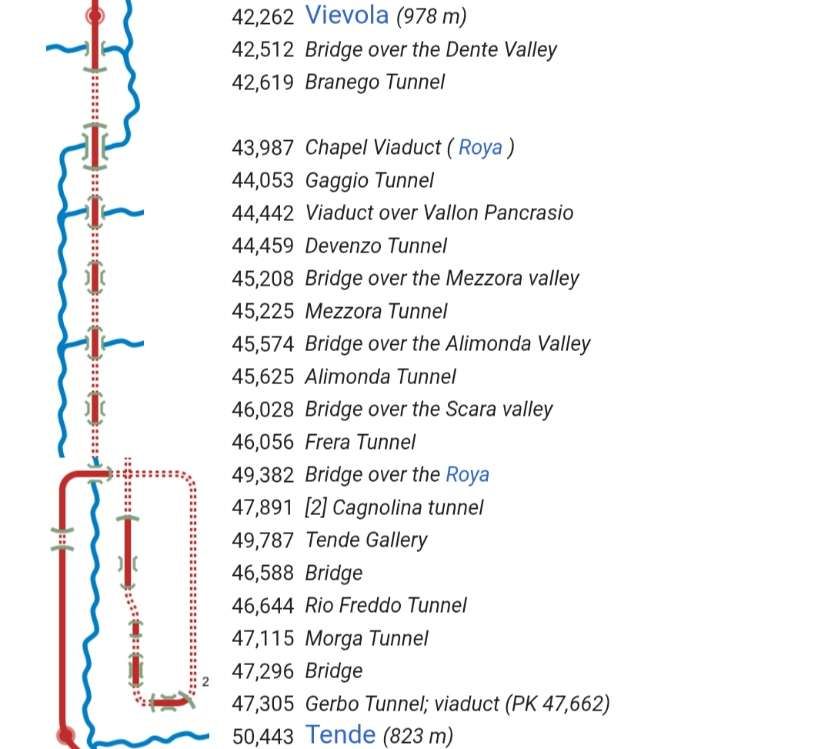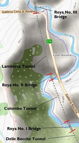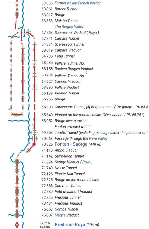 Banaudo et al tell us that seven further significant structures were included in the contract which covered the line as far as Vernante [1: p27] all of which sit within approximately 3 kilometres along the line: