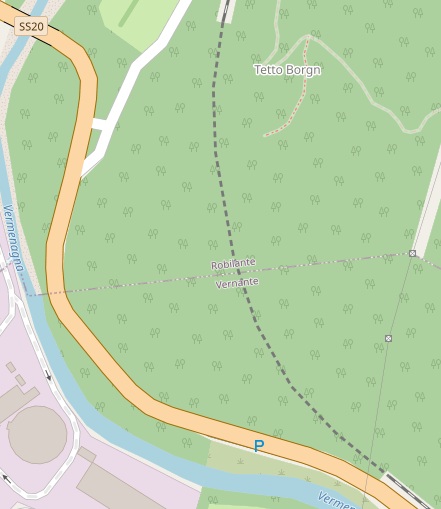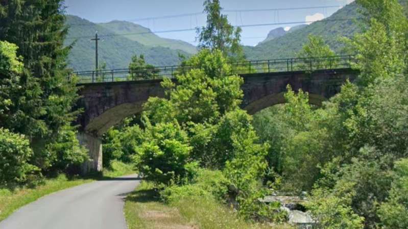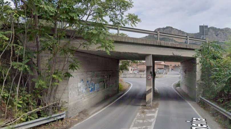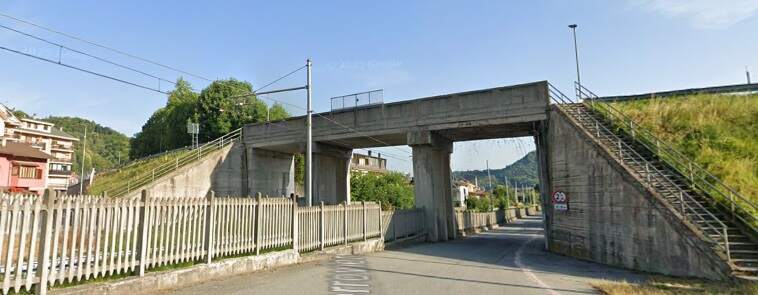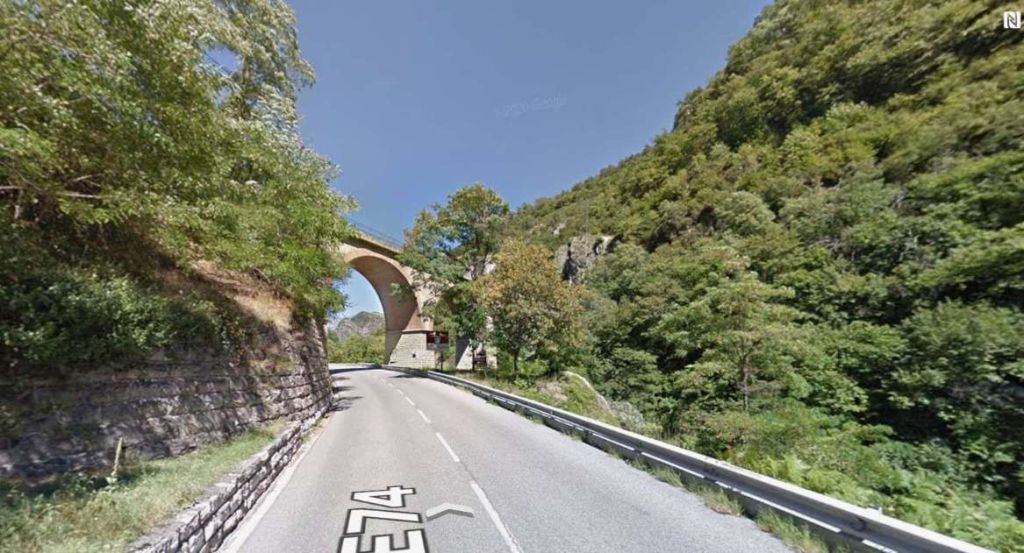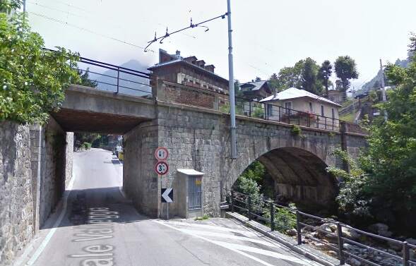 This extract from Google Maps satellite imagery shows the length of the line from Robilante to VernanteVia Ferrovieri runs immediately adjacent to the railway for some distance, passing under a road over bridge along with the railway. This view looks ahead up the Vermenaga valley. [Google Streetview, June 2025]The same bridge seen from the Southeast. [Google Streetview, June 2025]