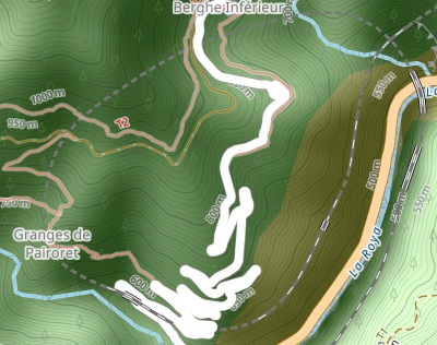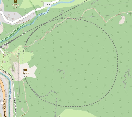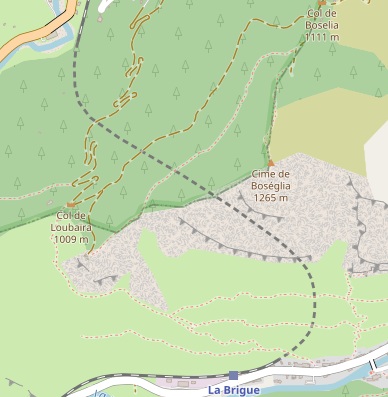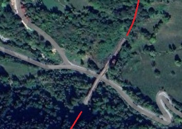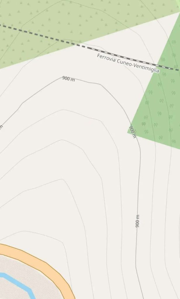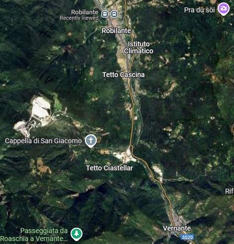 And close to where the line of the older route meets the newer route the line is heading South-southwest and turns towards the Southwest. [43]Now in Borgo San-Dalmazzo we have reached the point where the older line curved in from the East having crossed the River Gesso. [44]