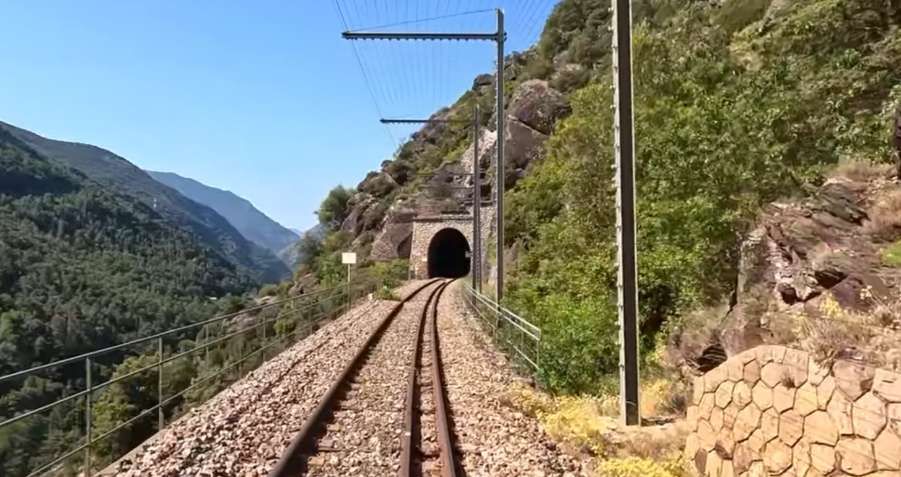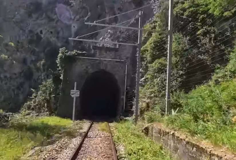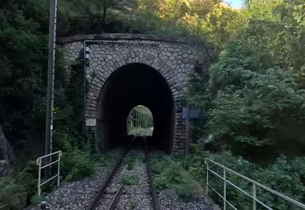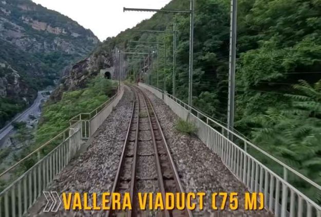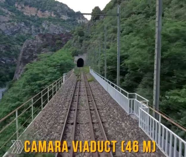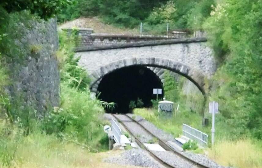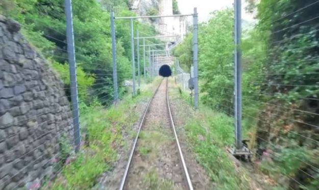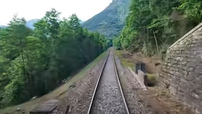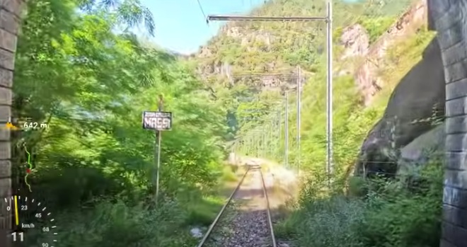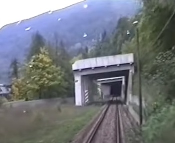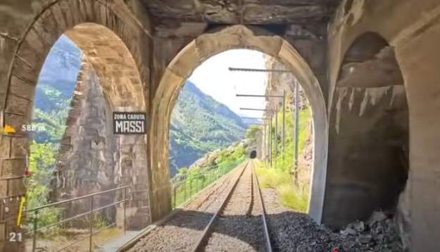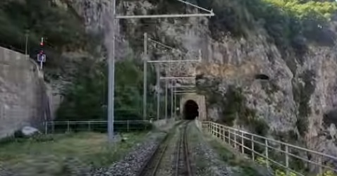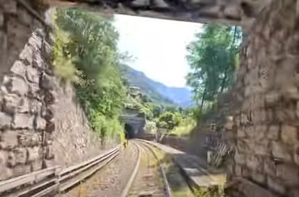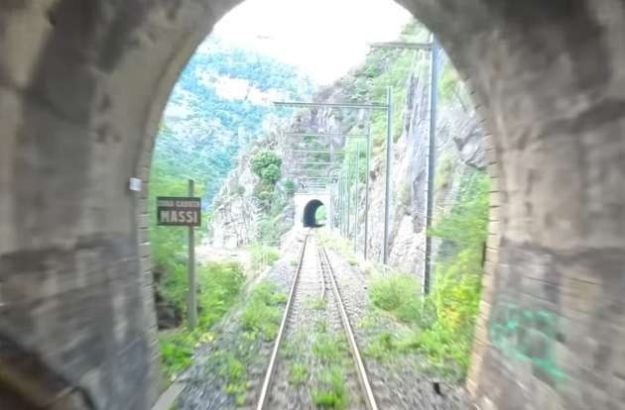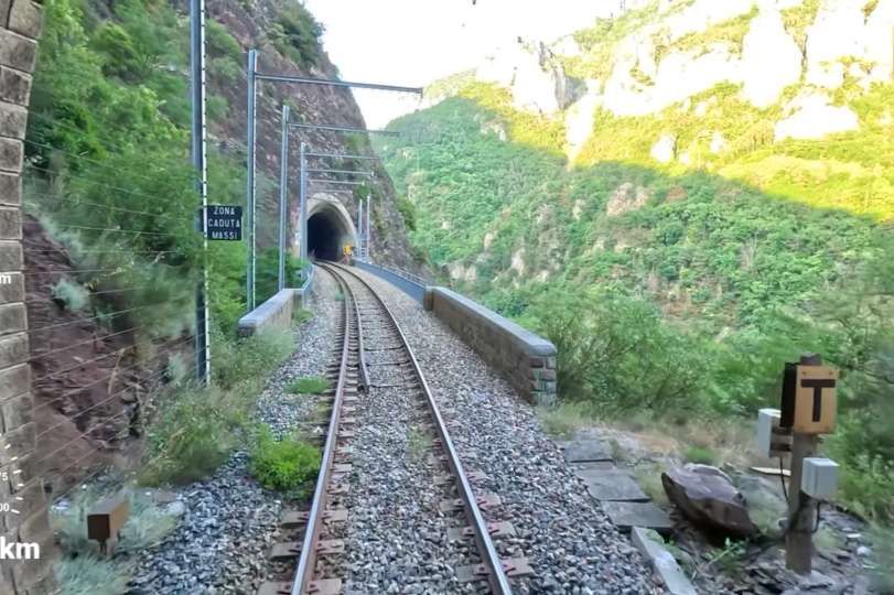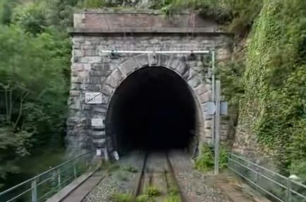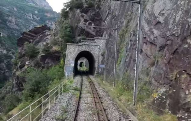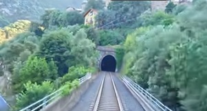 The next tunnel is only 200 metres or so along the line, the Corte-Soprano Tunnel is even shorter at only 95 metres in length. [57]
