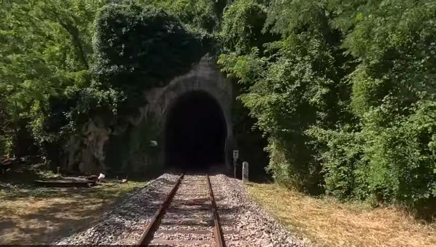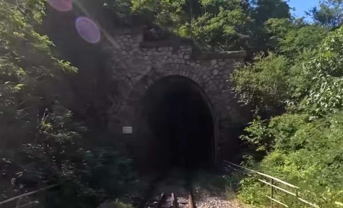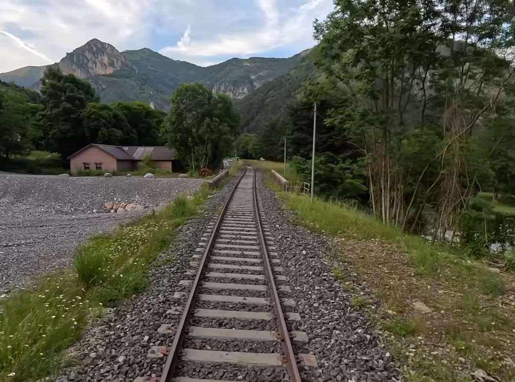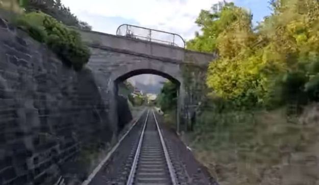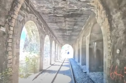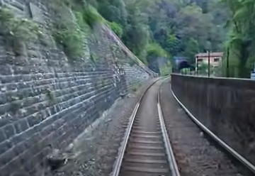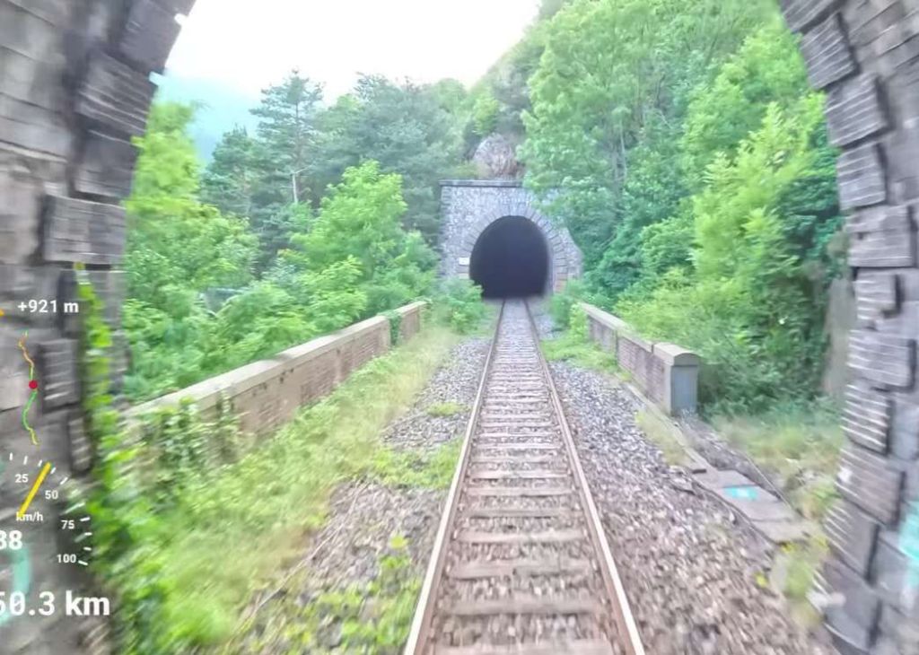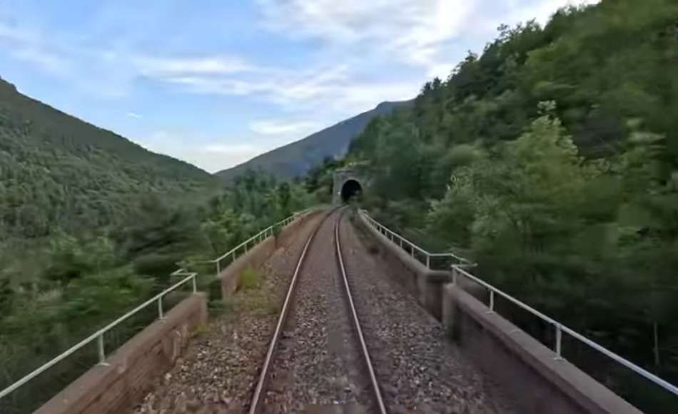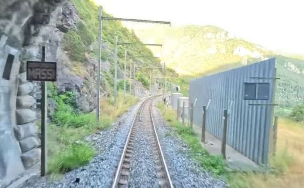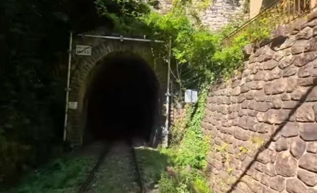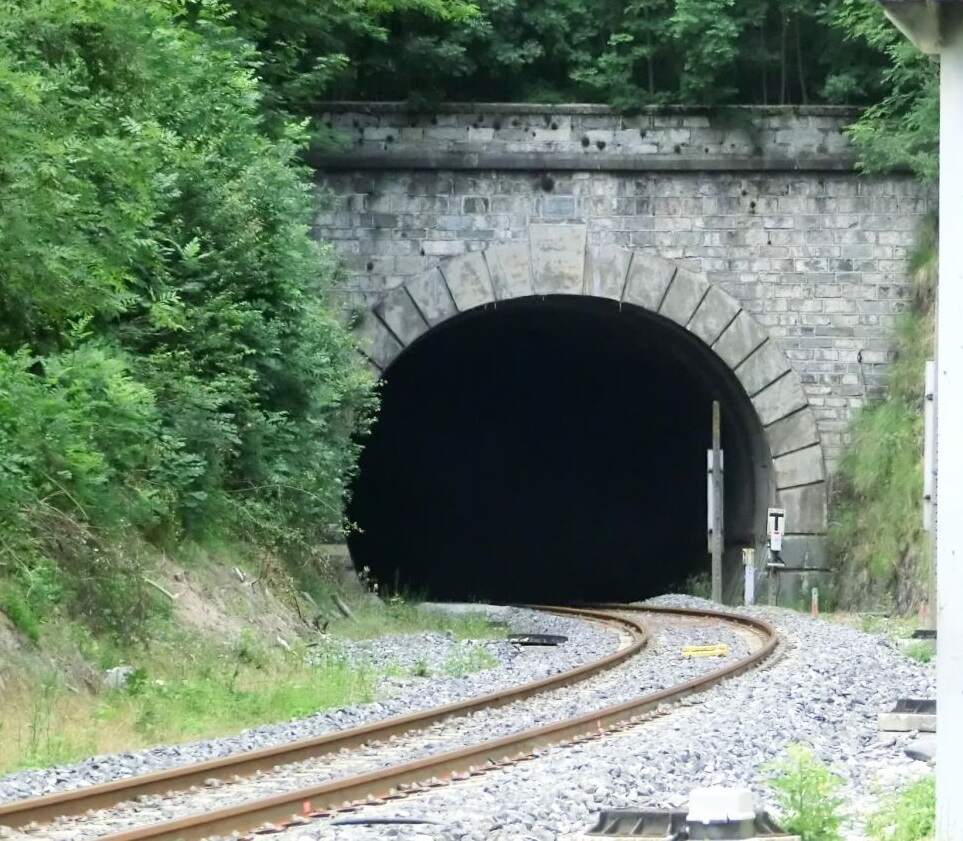 The next tunnel is only 200 metres or so along the line, the Corte-Soprano Tunnel is even shorter at only 95 metres in length. [57]