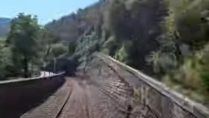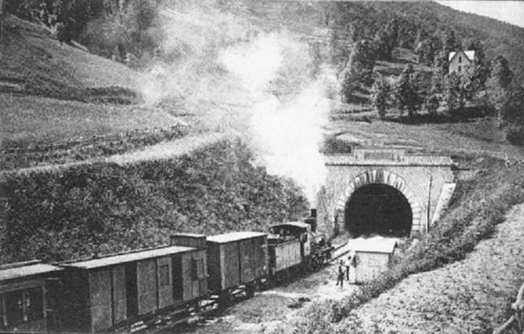 The view from the cab of the same train as it leaves the South portal of Tunnel du Bon Voyage. [4]