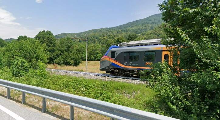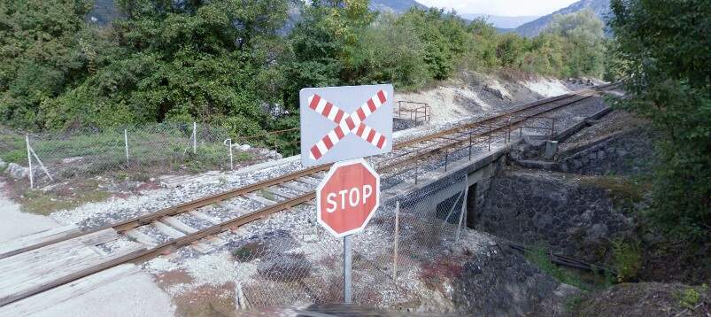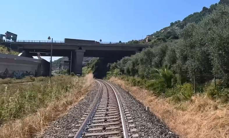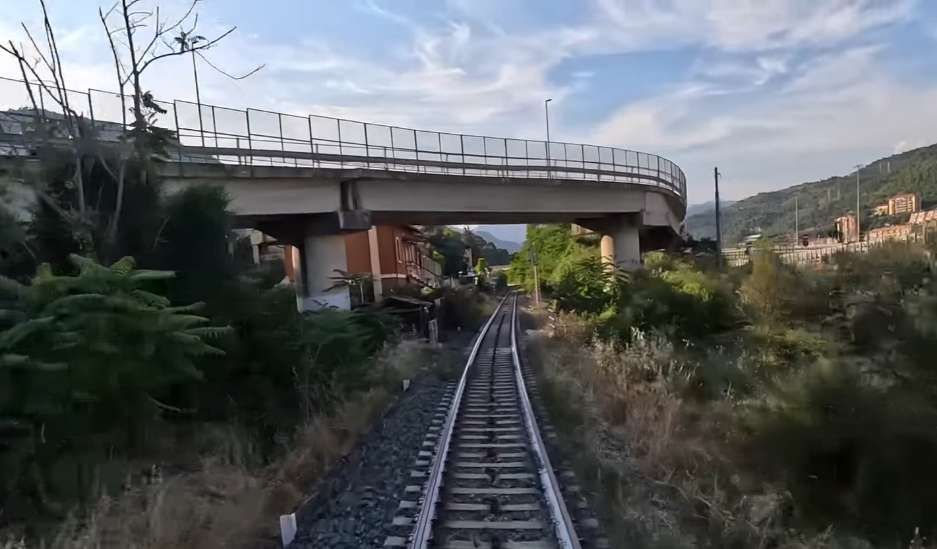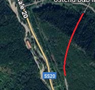 After passing under the SS20, the line runs alongside the road for a kilometre or so.