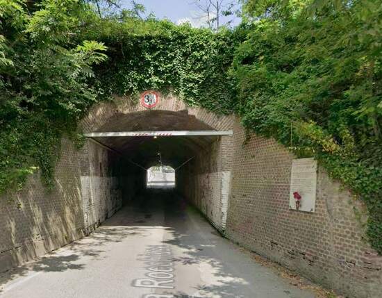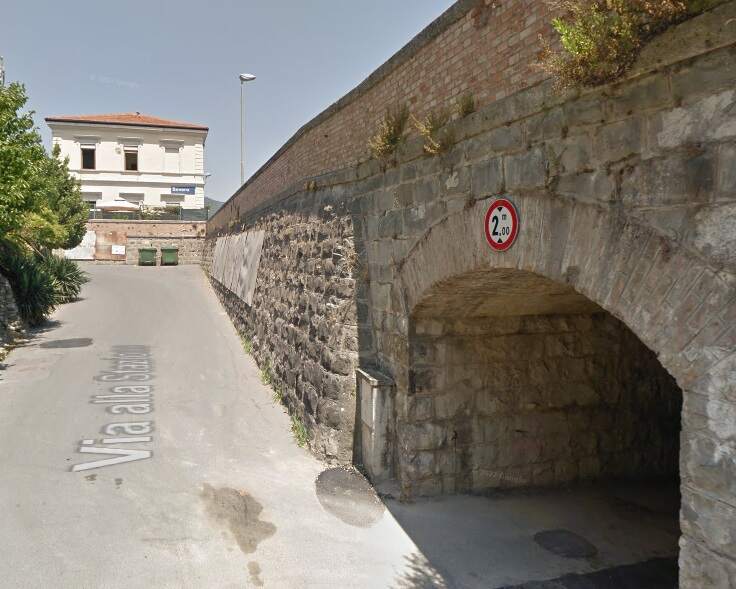 Looking East through the underpass which takes Via La Tina under the railway. [Google Streetview, June 2025]Looking East through the structure that carries the railway over Strada da Castello. [Google Streetview, June 2025]