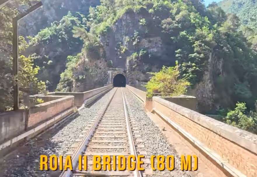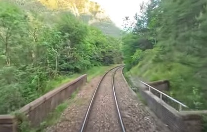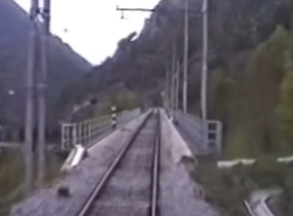 Looking back towards the South portal of the Ponte Nuevo Tunnel the parapet railings of the retaining wall can be seen on the left of this image. [45]