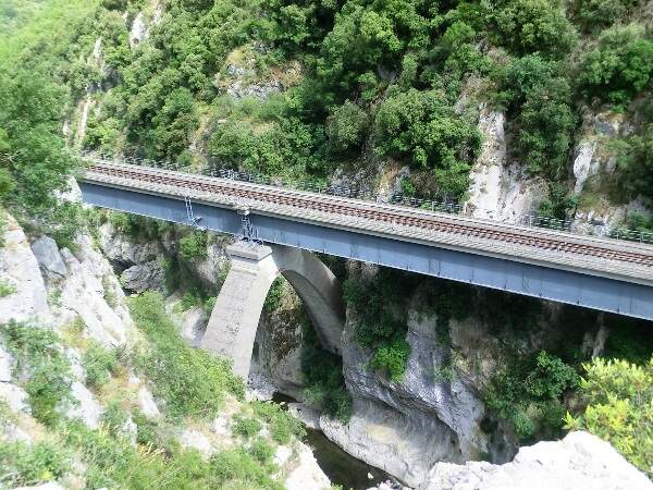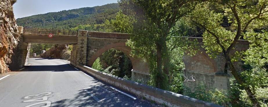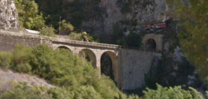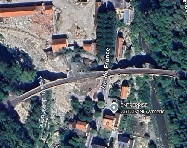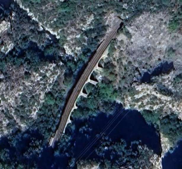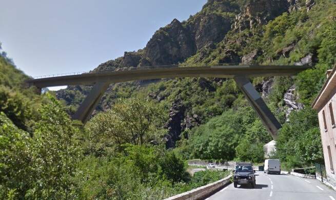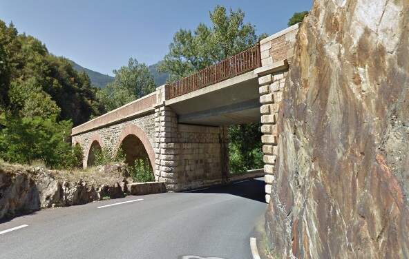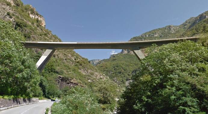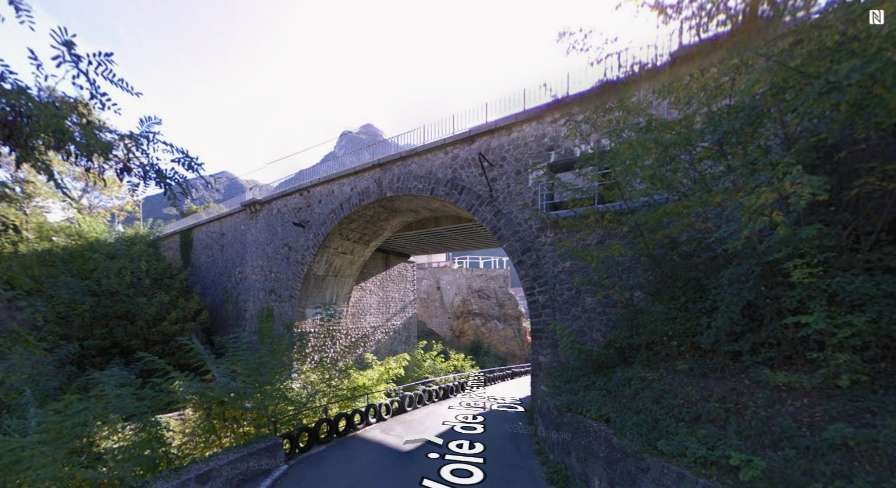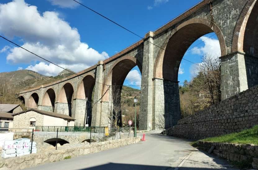 A more modern structure now spans the M2204B, Route de Turin. [Google Streetview, March 2025]A similar aged steel bridge spans Boulevard Jean Baptiste Verany adjacent to the River Paillon. A series of graceful arches make up the railway viaduct across the Paillon. [Google Streetview, March 2025]The Stone-arch viaduct across the River Paillon seen from the Southeast – 3 spans, 127 metres in length. [Google Streetview, March 2025]The same structure seen from the Southwest on Avenue du Maréchal Lyautey. The three arches over the river are clearly visible and the two steel spans at either end of the structure are also visible. [Google Streetview, March 2025]
