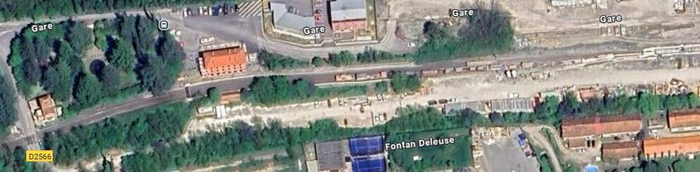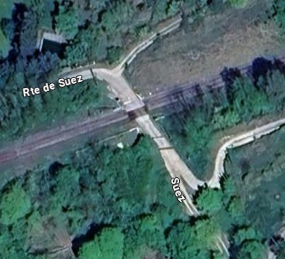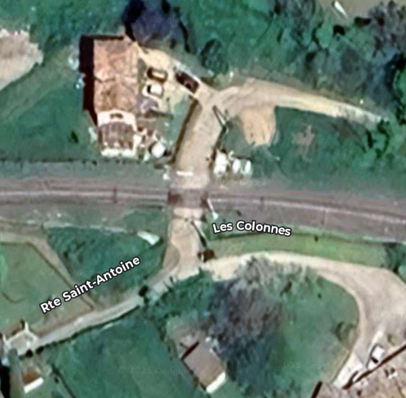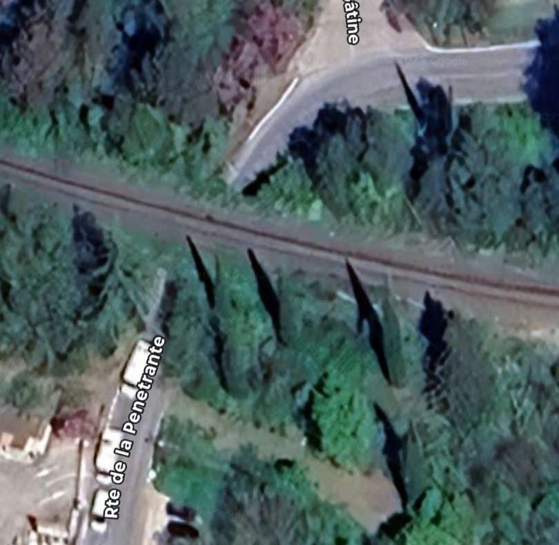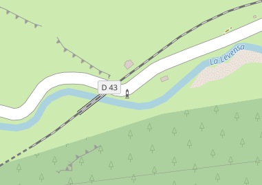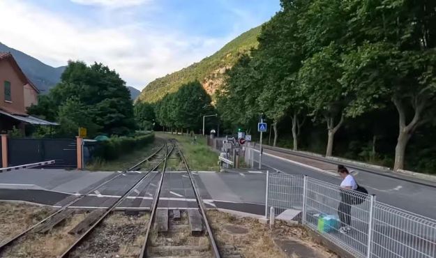 Looking back Northeast towards Tunnel de Serradone from the level-crossing. [Google Streetview, March 2025]Looking Southwest at the level-crossing. [Google Streetview, March 2025]
