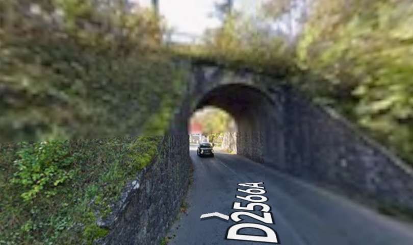 The Northwest portal of Tunnel de Roche, seen looking East from a minor road. [Google Streetview, December 2010]