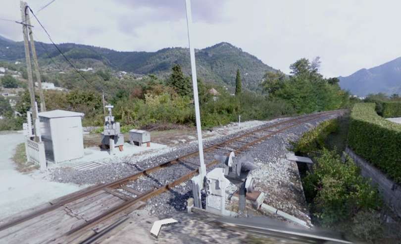 The view back towards Lat Tinite-Victor Station from the level-crossing (Road: M2204C). [Google Streetview, March 2025]The view South towards Nice from the level-crossing. [Google Streetview, March 2025]