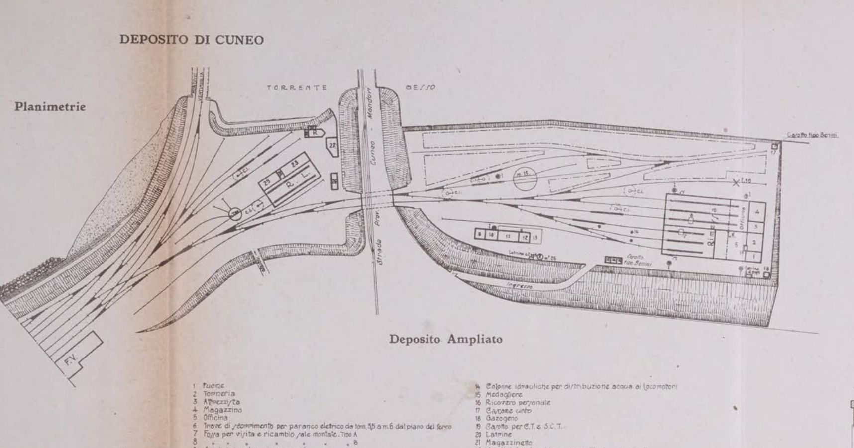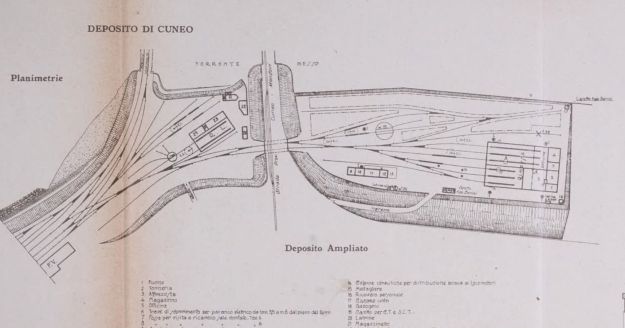 The locomotive depot area, left vacant after the opening of the new Cuneo station, was later reused by a sawmill connected by a siding to the Gesso station. [25]