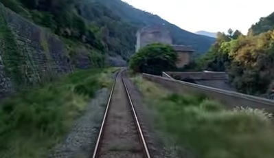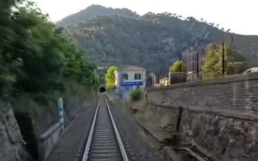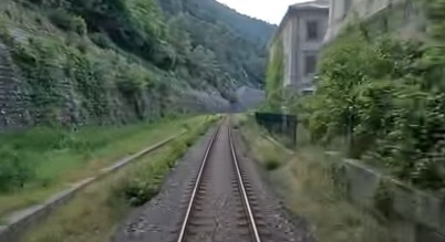 The view from the cab of the Nice-bound train leaving Tunnel de Serradone. [4]