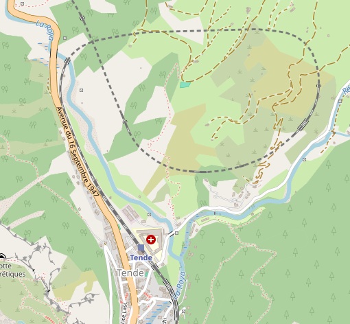 The older line curved round to the Southwest and followed a straight course towards Borgo-San-Dalmazzo Railway Station. The newer line has taken its place on the approach to the Station from the Northeast.