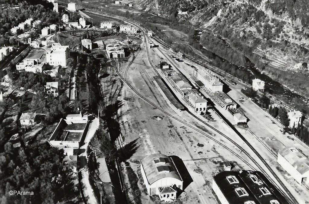 The Nice Depot was built on the site of orange groves. “The Société des Travaux en Ciment Thorrand et Compagnie, … originally from Grenoble and based in Nice, used reinforced concrete to build a 110 m diameter rotunda for forty-eight locomotives, a maintenance workshop for six locomotives, a water tower supplied by the Paillon water table, a fuel park with an 80 m quay served by 4.40 m turntables, several buildings housing apprentices, administrative offices, … refectory, oil mill, lamp room, etc.” [1: p103]