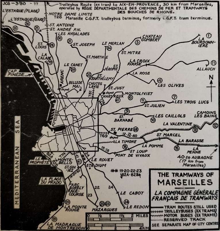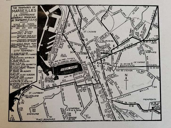 The June 1950 issue of The Modern Tramway carried a report by A. A. Jackson on the tramways in the French port of Marseilles.