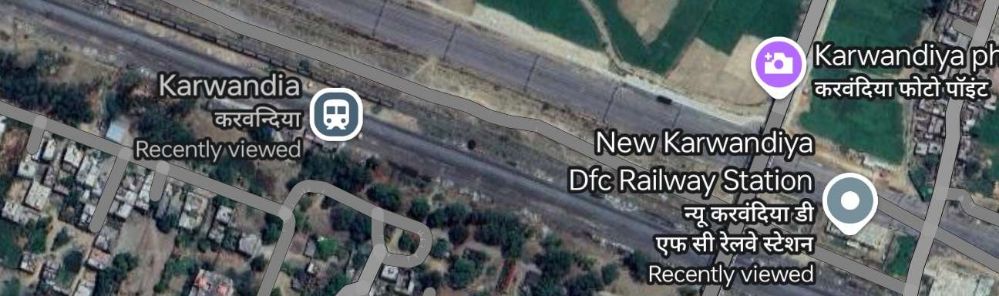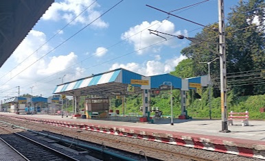 A couple of hundred meters short of Kosma Railway Station, the line crosses the Karhal to Ghiror Road at a level-crossing.