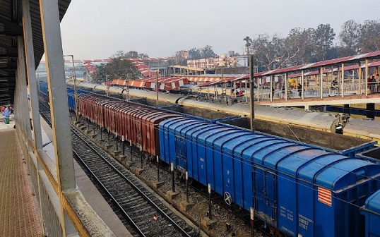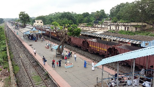 Kosma Railway Station provides a passing loop to allow trains travelling in opposite directions to cross.
